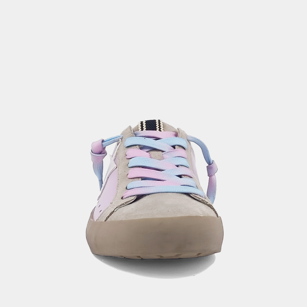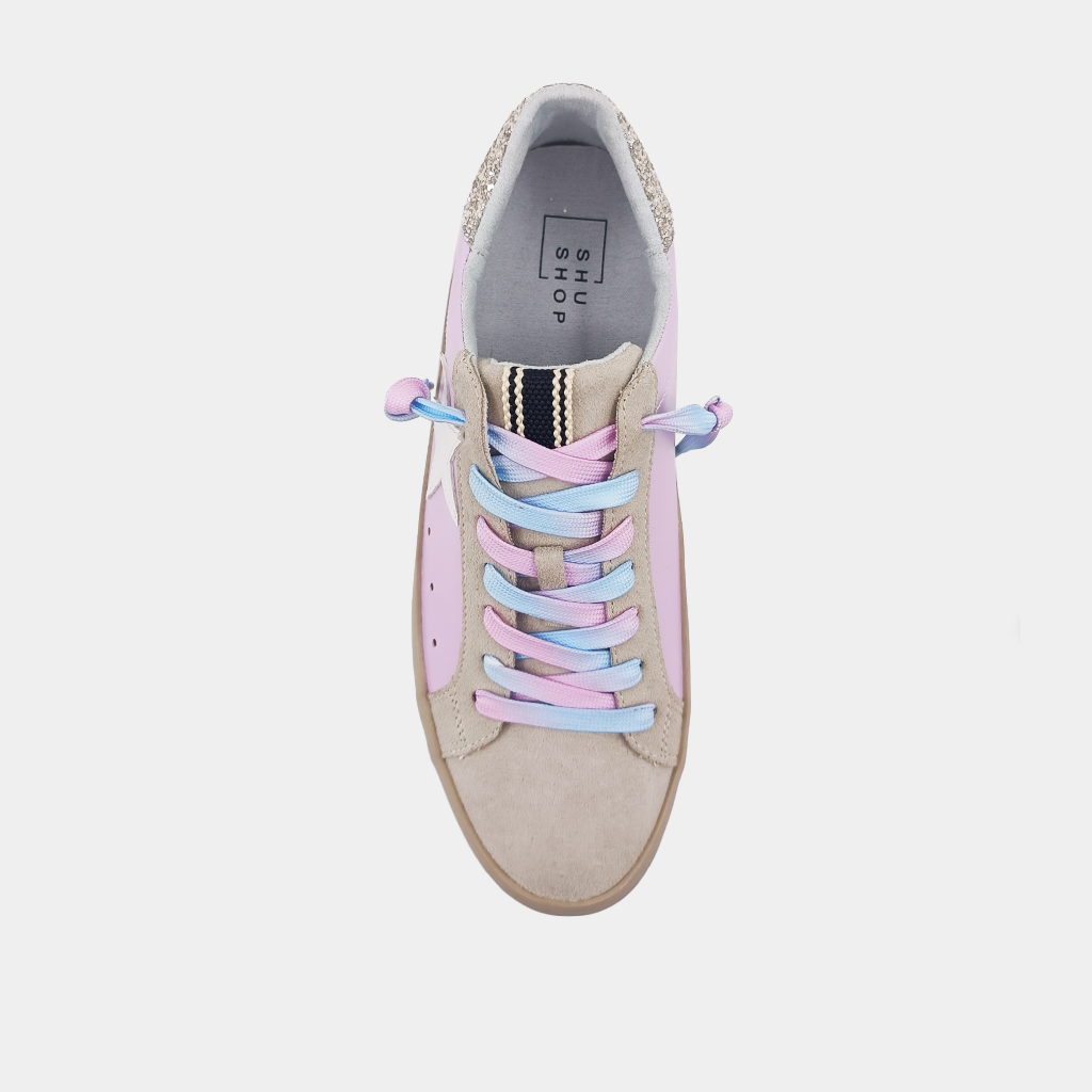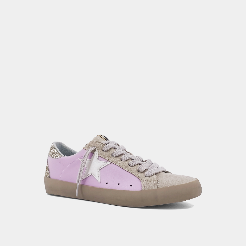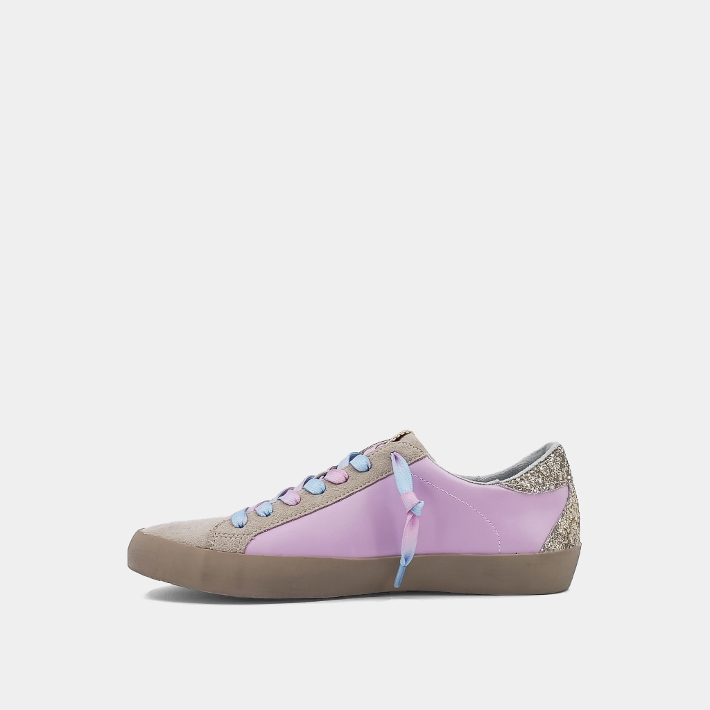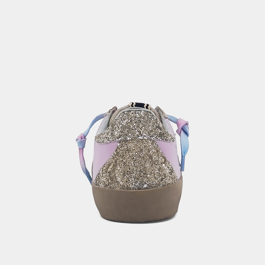 Introducing the PAULA sneaker! It is a beautiful blend of classic and contemporary styles, crafted with utmost attention to comfort and durability. The sneaker features a gracefully rounded toe that allows your toes to move freely and a sturdy sole that provides excellent support and stability. The wide range of color combinations allows you to choose the perfect match for any outfit in your wardrobe. This pair is made of premium faux leather and suede with glittery embellishments on the back, making it a fashion statement. Undoubtedly, a must-have item in your footwear collection.