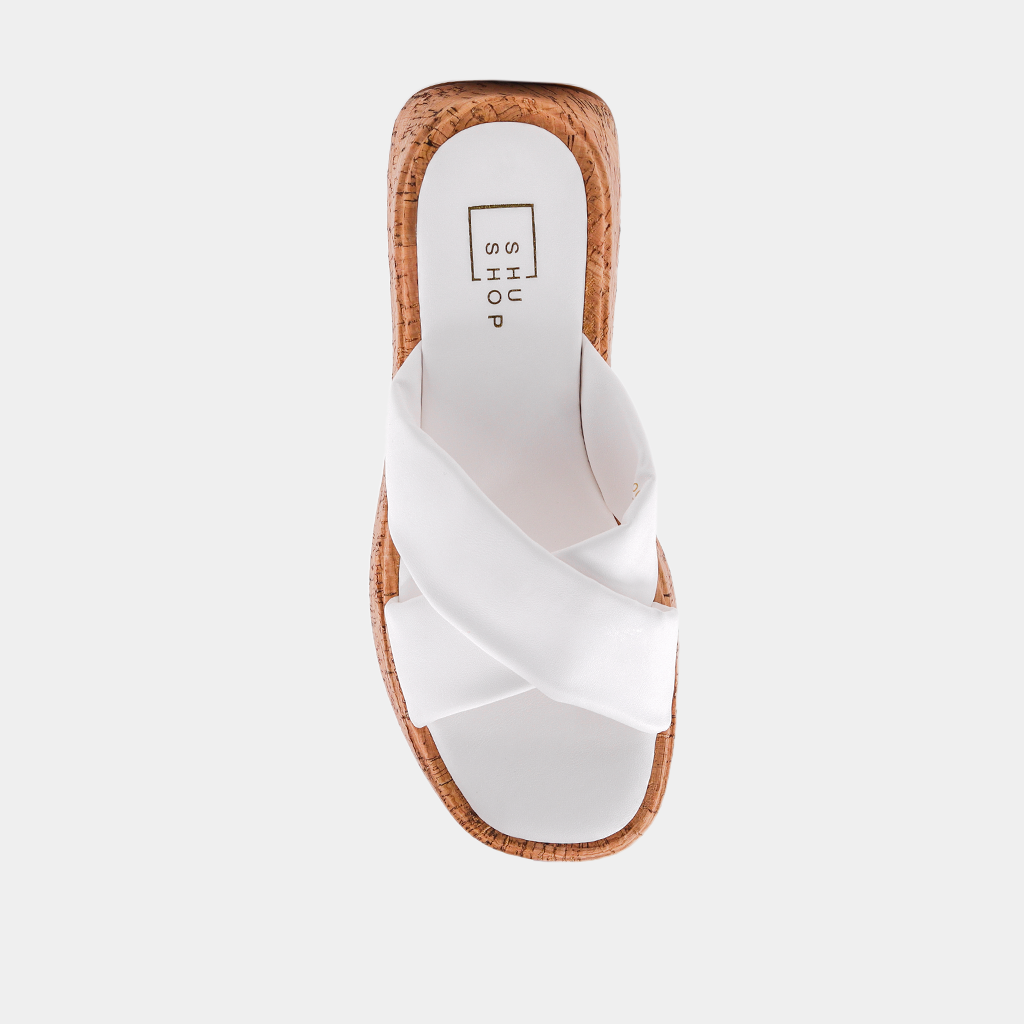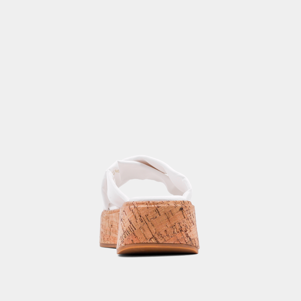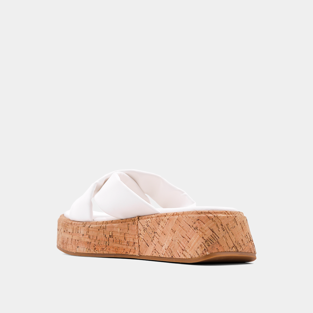 Fresh, clean, and stylish, the LYDIA in white is your go-to summer sandal wedge. The smooth faux leather straps contrast beautifully with the cork platform sole, giving you an effortlessly elevated look. Perfect for pairing with breezy linen outfits or your favorite denim.