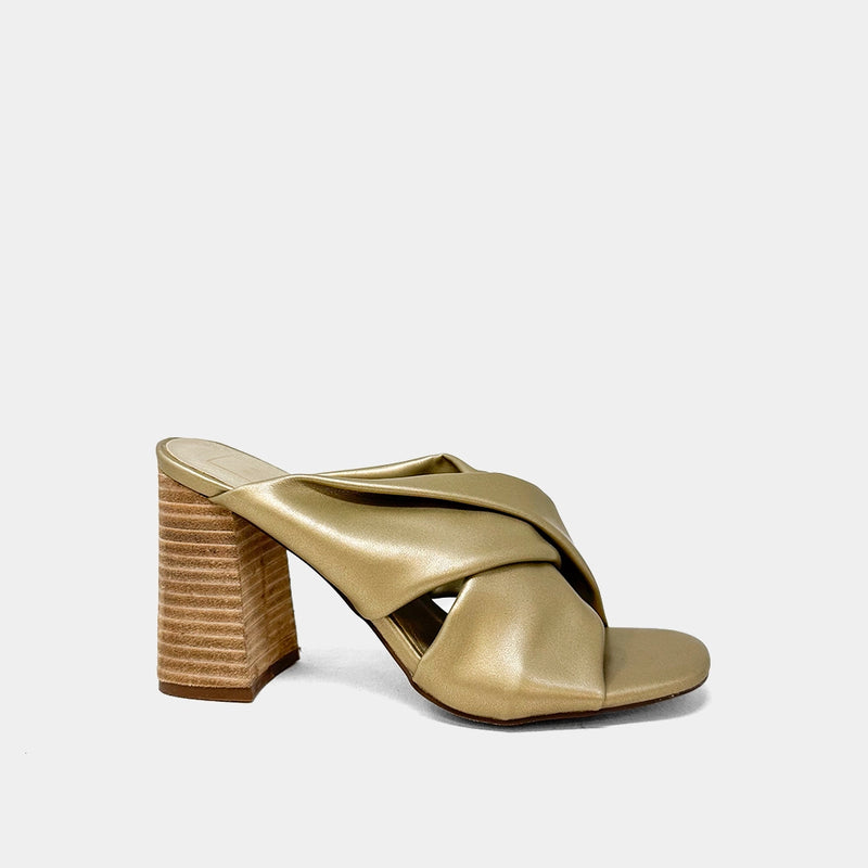 Crafted from metallic soft faux leather, our Fiji slip-on sandal is a timeless silhouette updated with contemporary details, such as its draped upper and stacked chunky heel. Wear yours with wide-leg jeans or tailored pants.