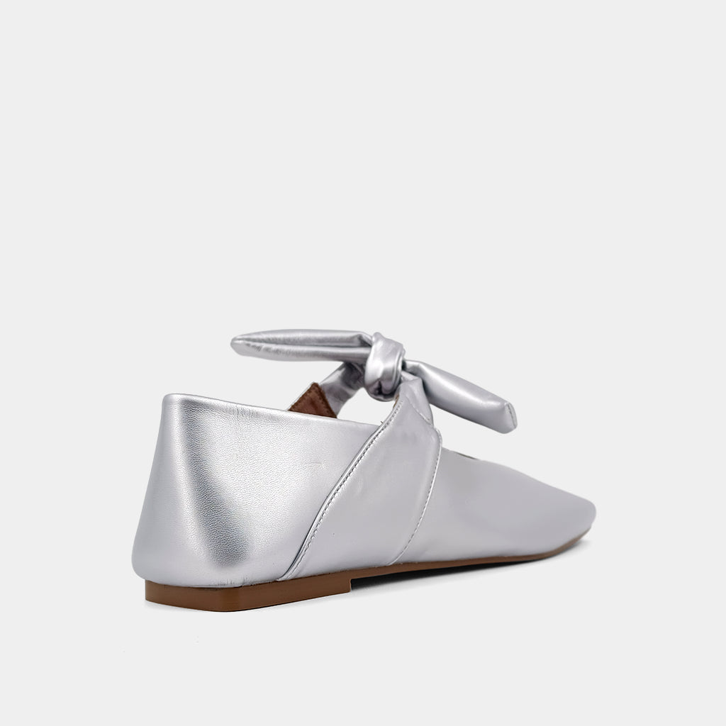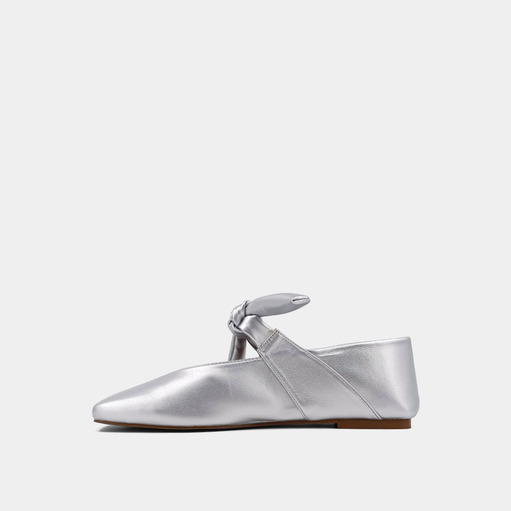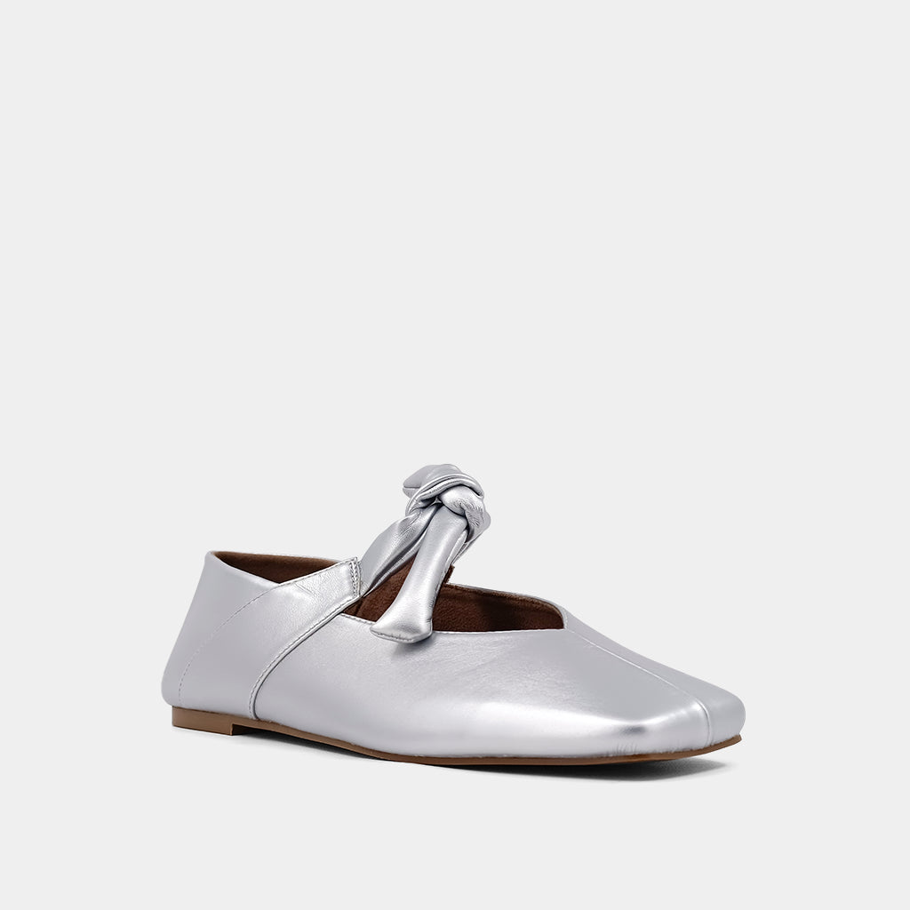 Introducing ANTONELLA, a revival of the beloved trend. These classic, versatile, and comfortable ballet flats are crafted from supple, high-quality, metallic faux leather and suede. The shoes feature a delightful Mary Jane shape with pointed toes and a slim bow-fastening strap. Their timeless design is a perfect complement to many outfits, infusing a sophisticated charm into any look.