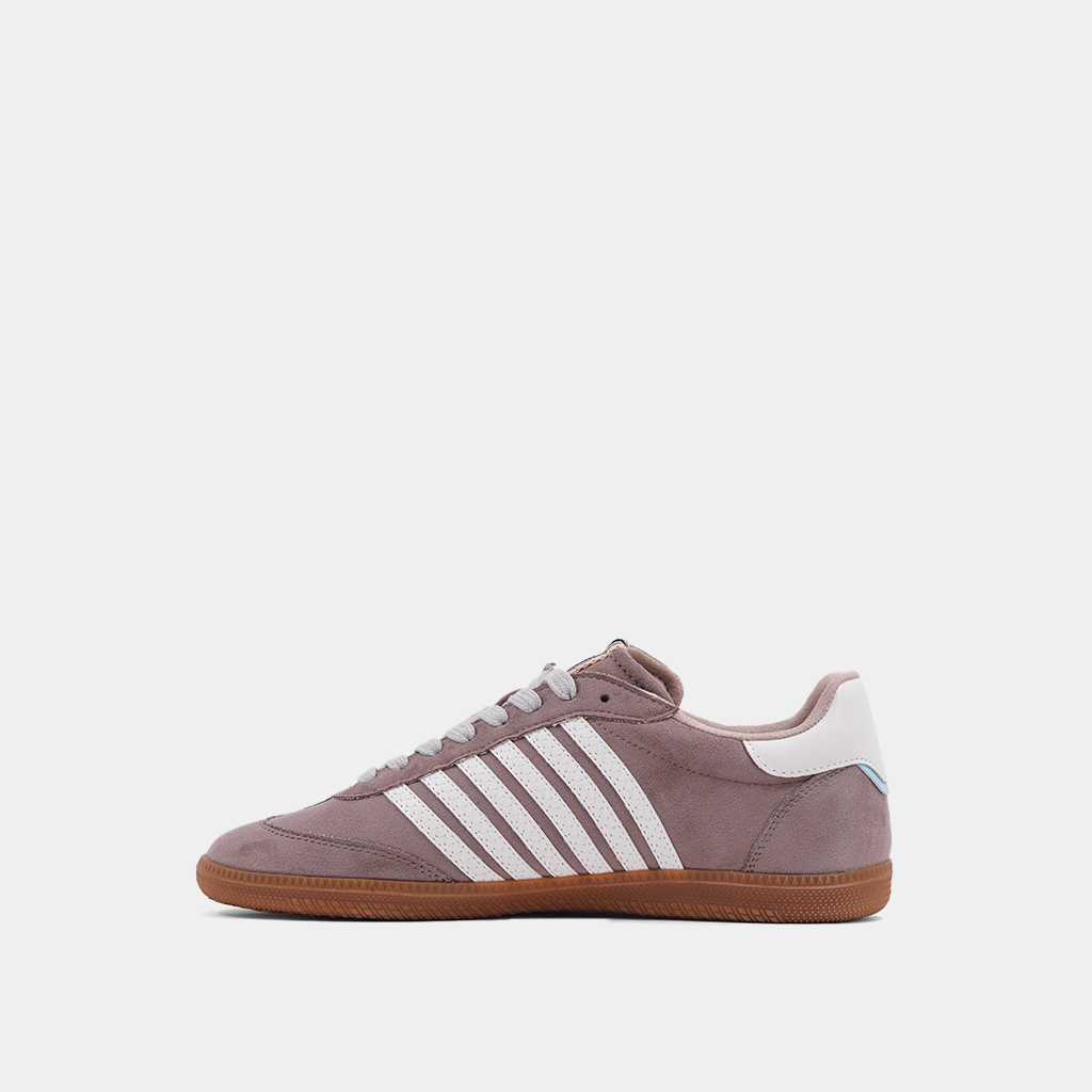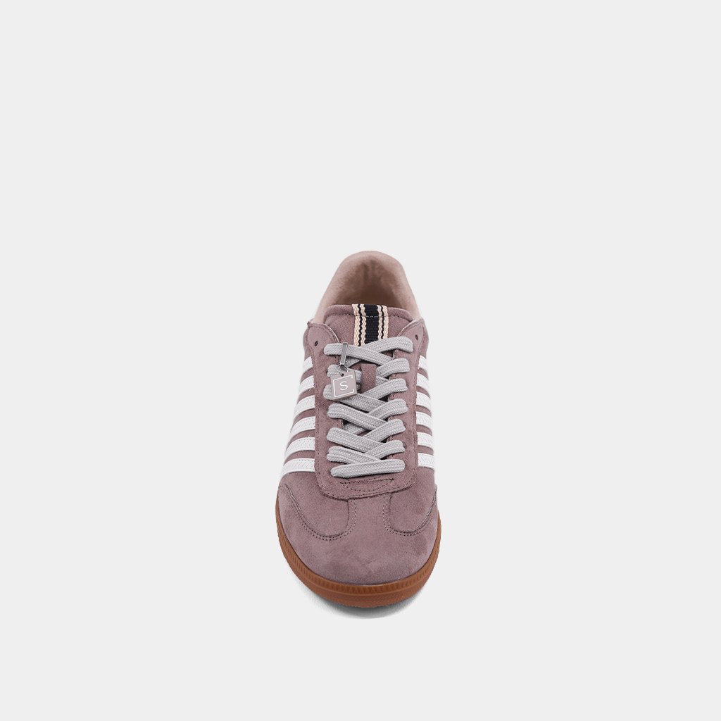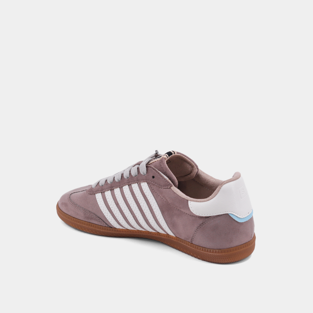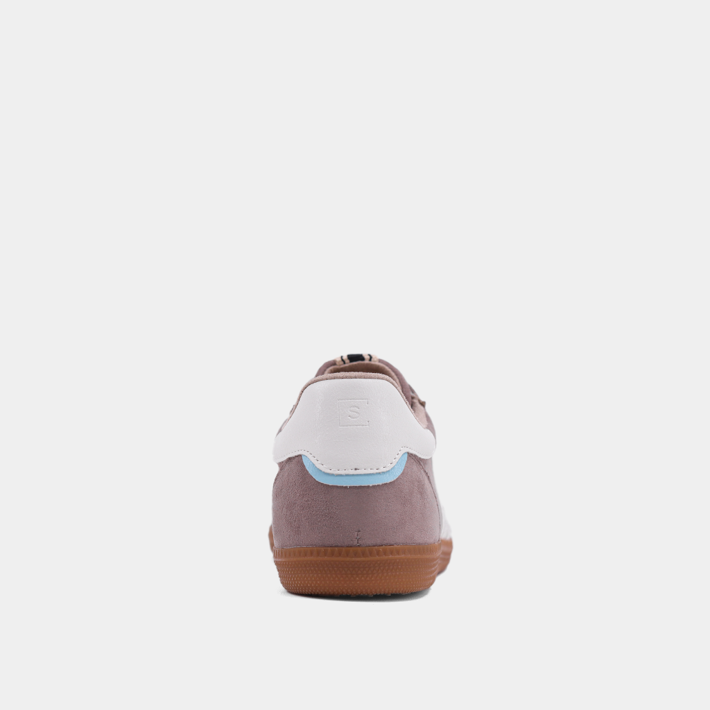 A modern nod to vintage sports styles, the STEVIE in Taupe Suede is built with soft faux suede and features crisp white stitched stripes for a bold, structured look. Finished with a contrast heel tab and a gum rubber sole, it's an easy statement-maker for everyday outfits.