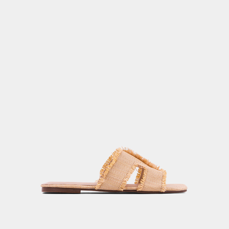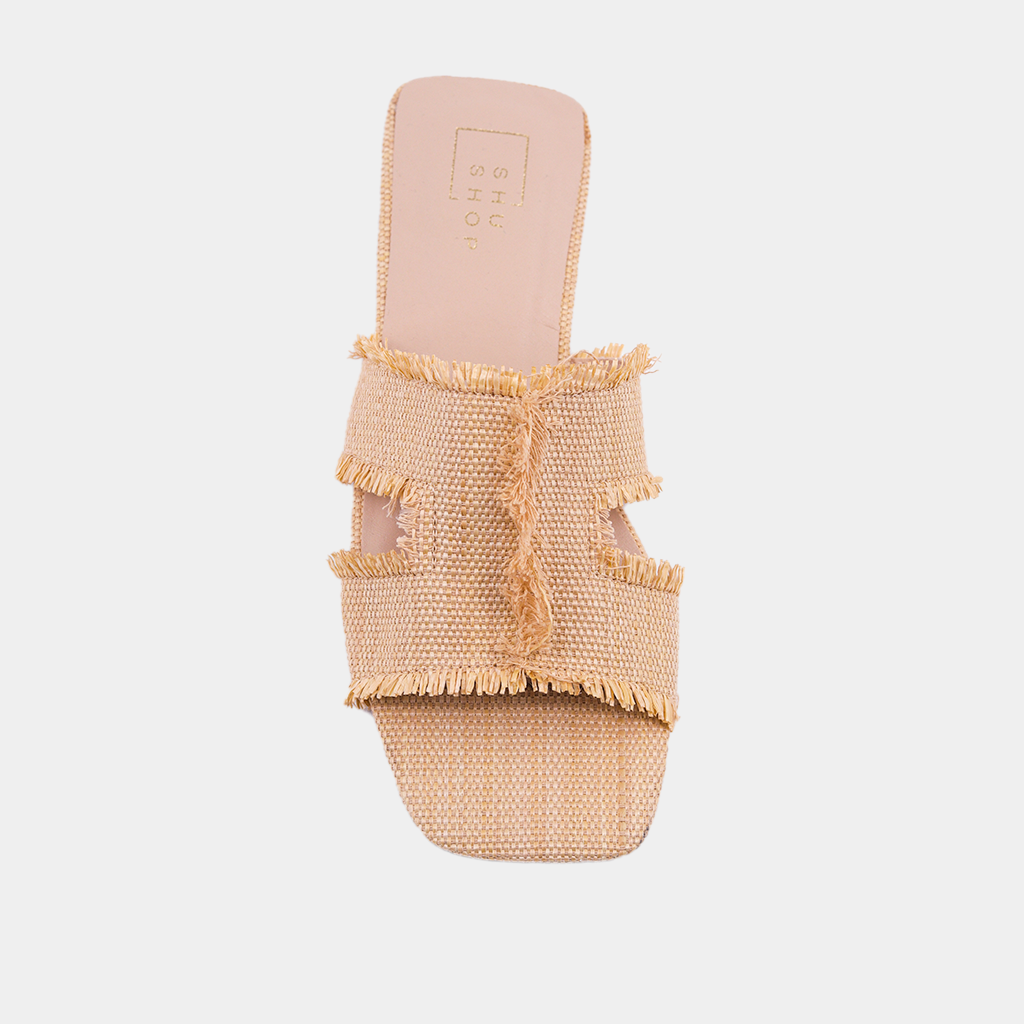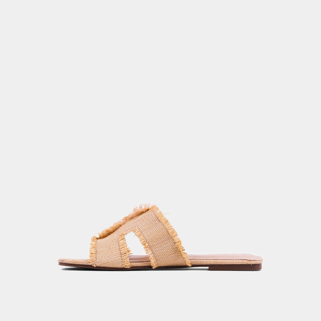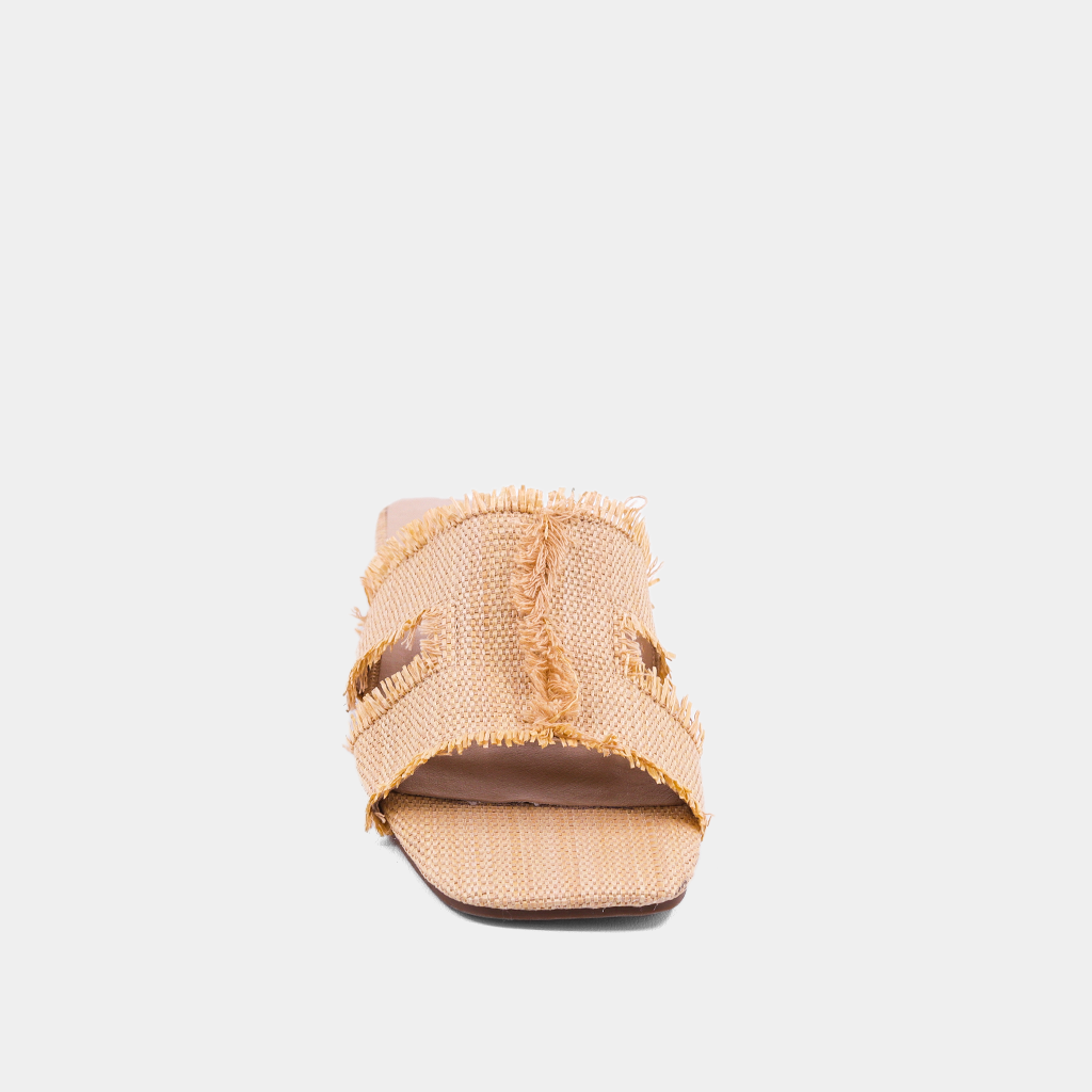 Breezy and effortlessly chic, the CHRISTINE slide in natural raffia is a must-have for spring and summer. Its crisscross woven upper and frayed edges add a carefree yet refined touch, while the cushioned insole ensures all-day comfort. Perfect for pairing with linen sets or flowy dresses.