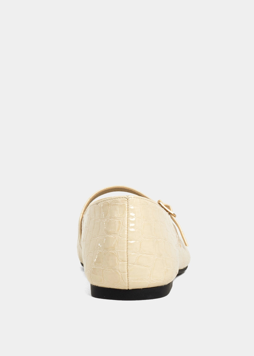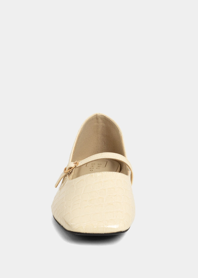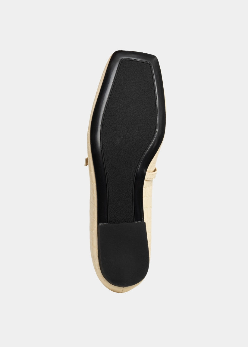 Minimalist charm meets subtle texture. The ADELE flat in bone croco is a refined Mary Jane with a glossy faux-crocodile finish and pointed toe. Its soft neutral hue makes it a versatile go-to for polished work looks or elevated everyday outfits. Timeless, sleek, and endlessly wearable.