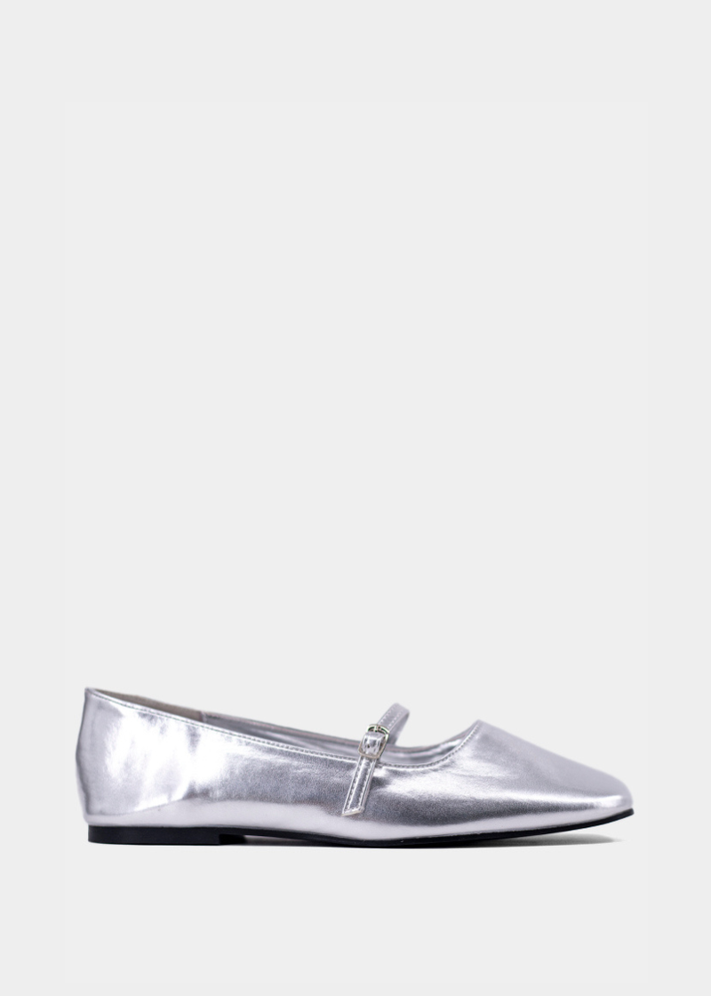 Refined elegance meets modern versatility in the ADELE flat in Sterling. Featuring a sleek metallic faux leather finish, this pointed-toe Mary Jane flat exudes sophistication. The delicate buckle strap adds a touch of charm, while the cushioned insole ensures all-day comfort. Perfect for both casual outings and formal occasions, these ballet flats add a polished edge to any wardrobe. Pair it with tailored trousers, flowy dresses, or sleek skirts for a timeless look.