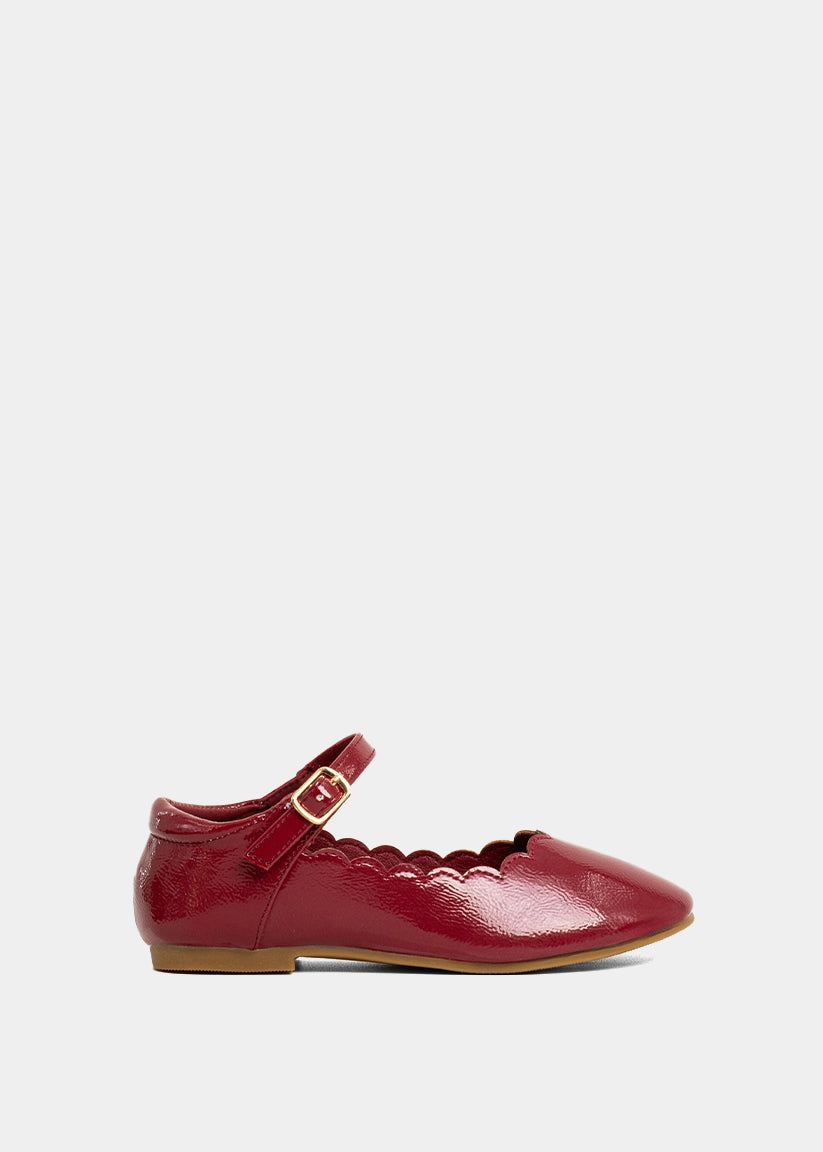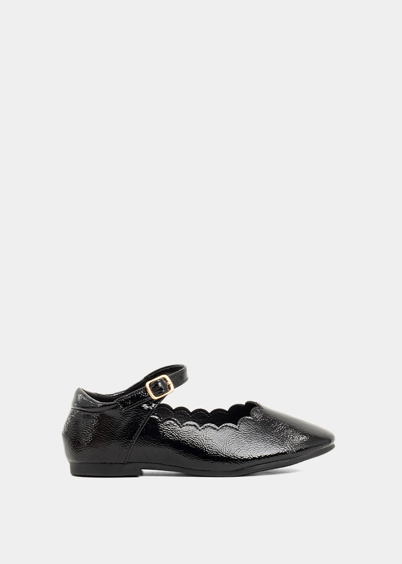A sweet classic with a modern twist. The AGATHA MINI in Black Patent is our elevated take on the traditional Mary Jane, reimagined for your little one. With its glossy faux patent finish and delicate scalloped edging, this style brings polish to every step. The adjustable buckle strap ensures a secure fit for both playdates and picture days.