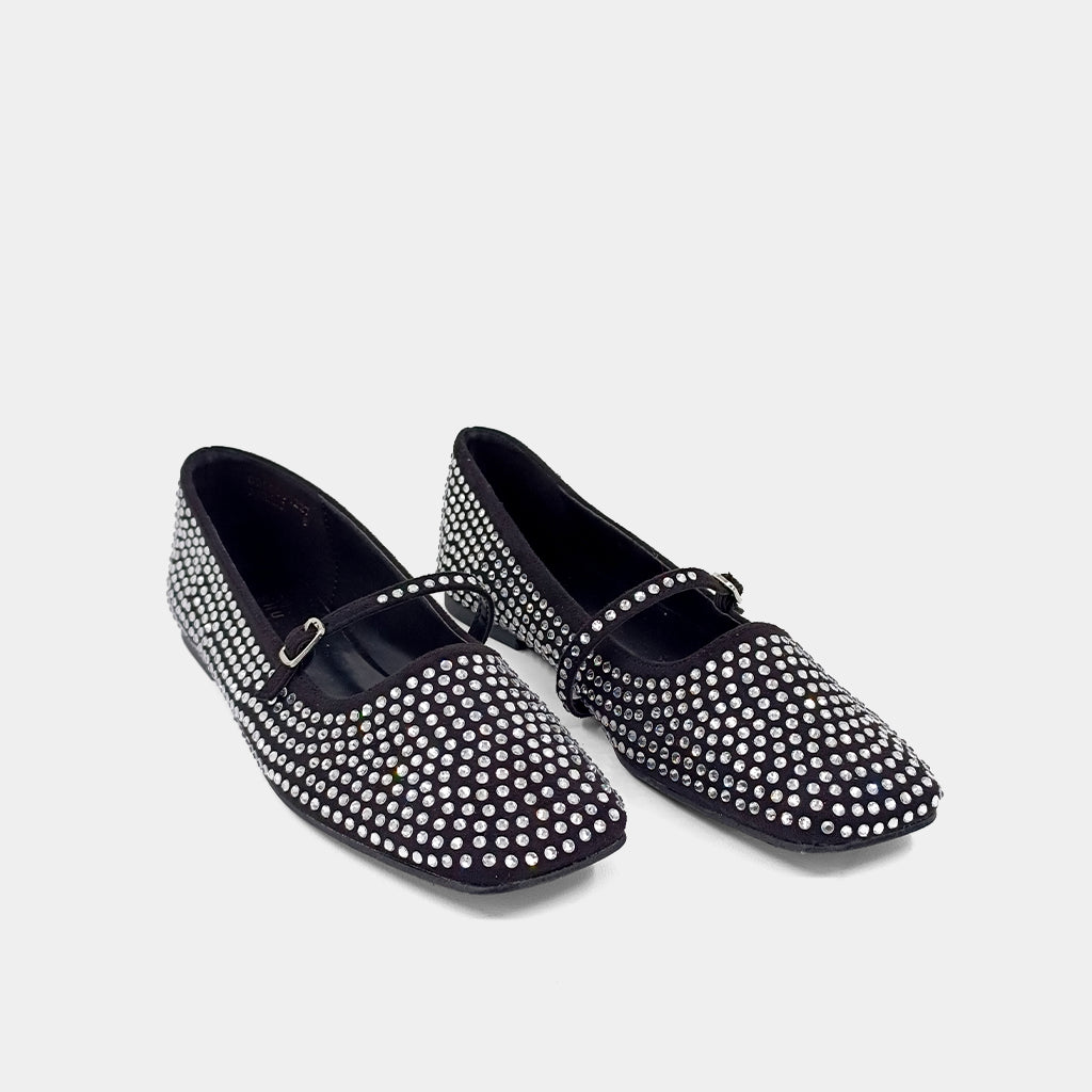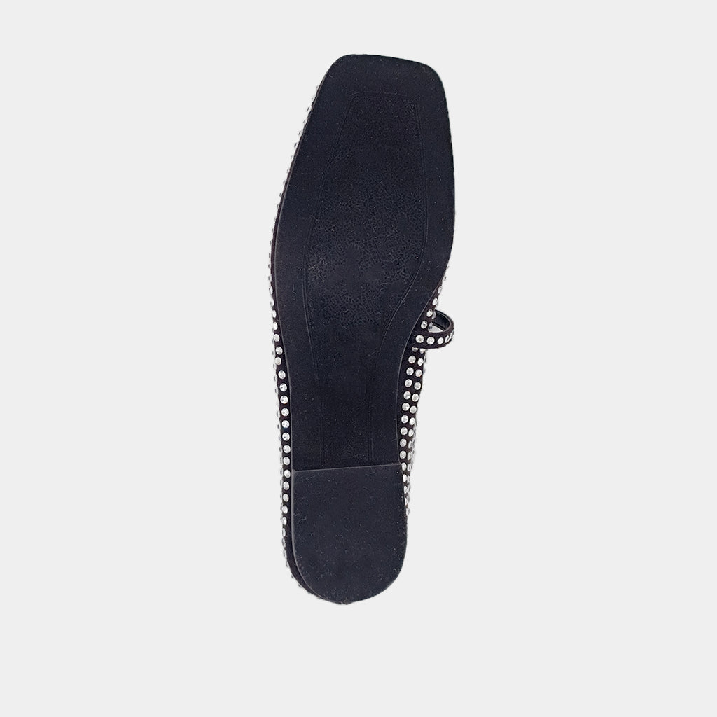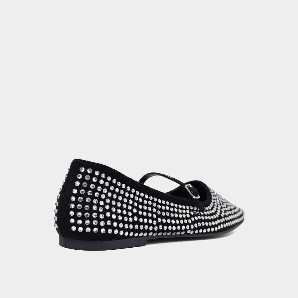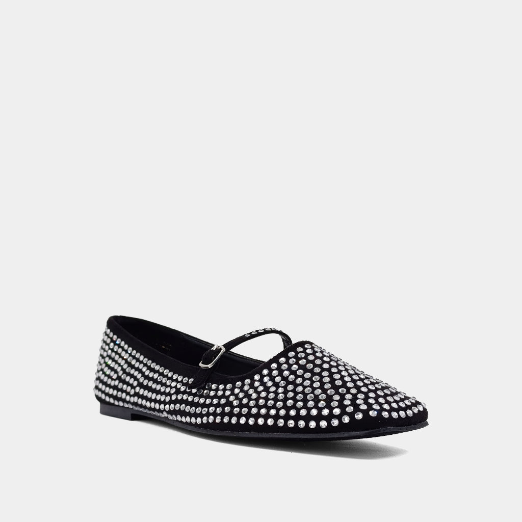 The exquisite AMELIE ballet flats are a contemporary interpretation of a timeless favorite. Crafted from sumptuous faux suede, these flats boast a chic Mary Jane design with pointed toes and an elegant buckle-fastening strap adorned with meticulously handcrafted crystal-like embellishments. Their versatile and comfortable nature makes them the ideal choice for any occasion, effortlessly adding a touch of sophistication to any ensemble.