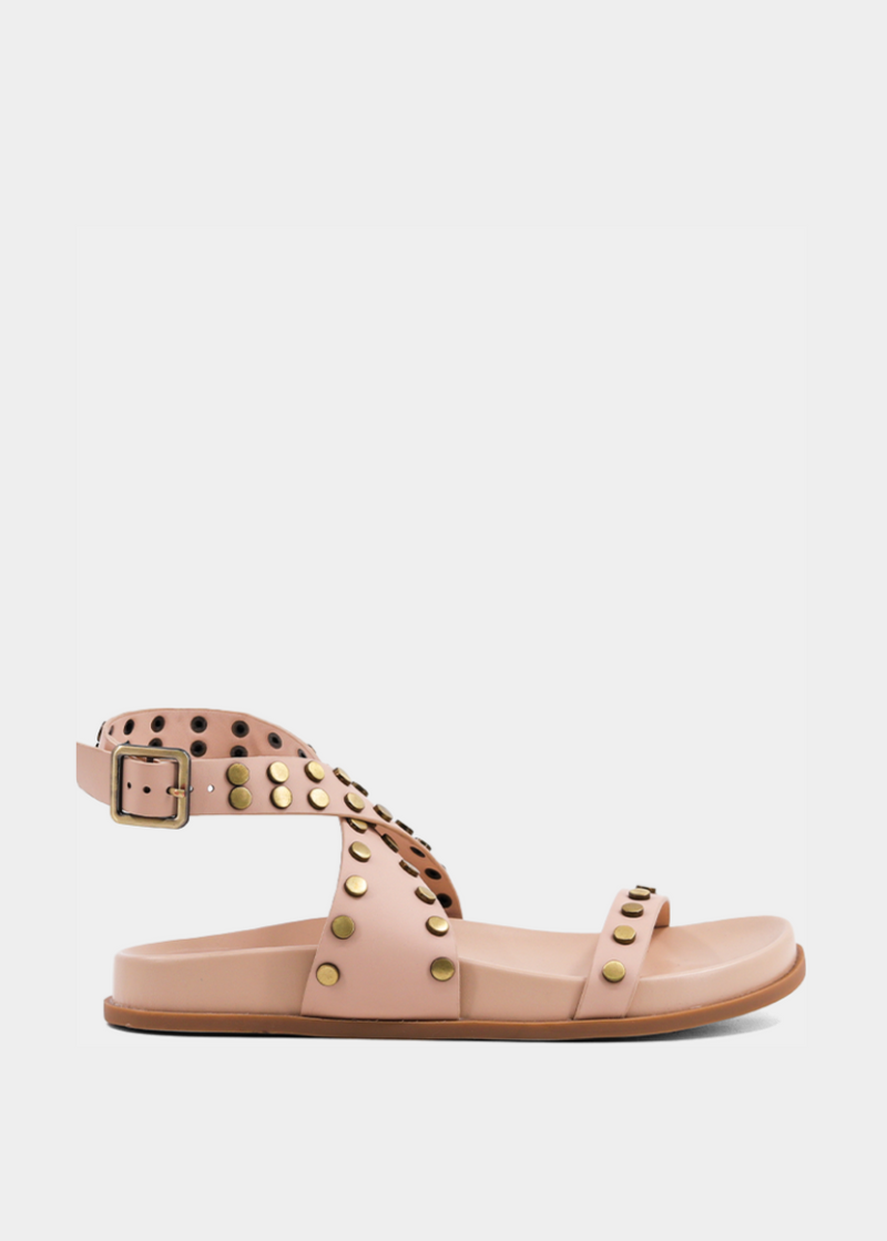 The CECILY in nude is your go-to for effortless glam. Featuring soft faux leather and striking gold studs, this sandal balances edgy and elegant. The neutral tone makes it a versatile staple, while the padded footbed keeps you comfortable all day long.
