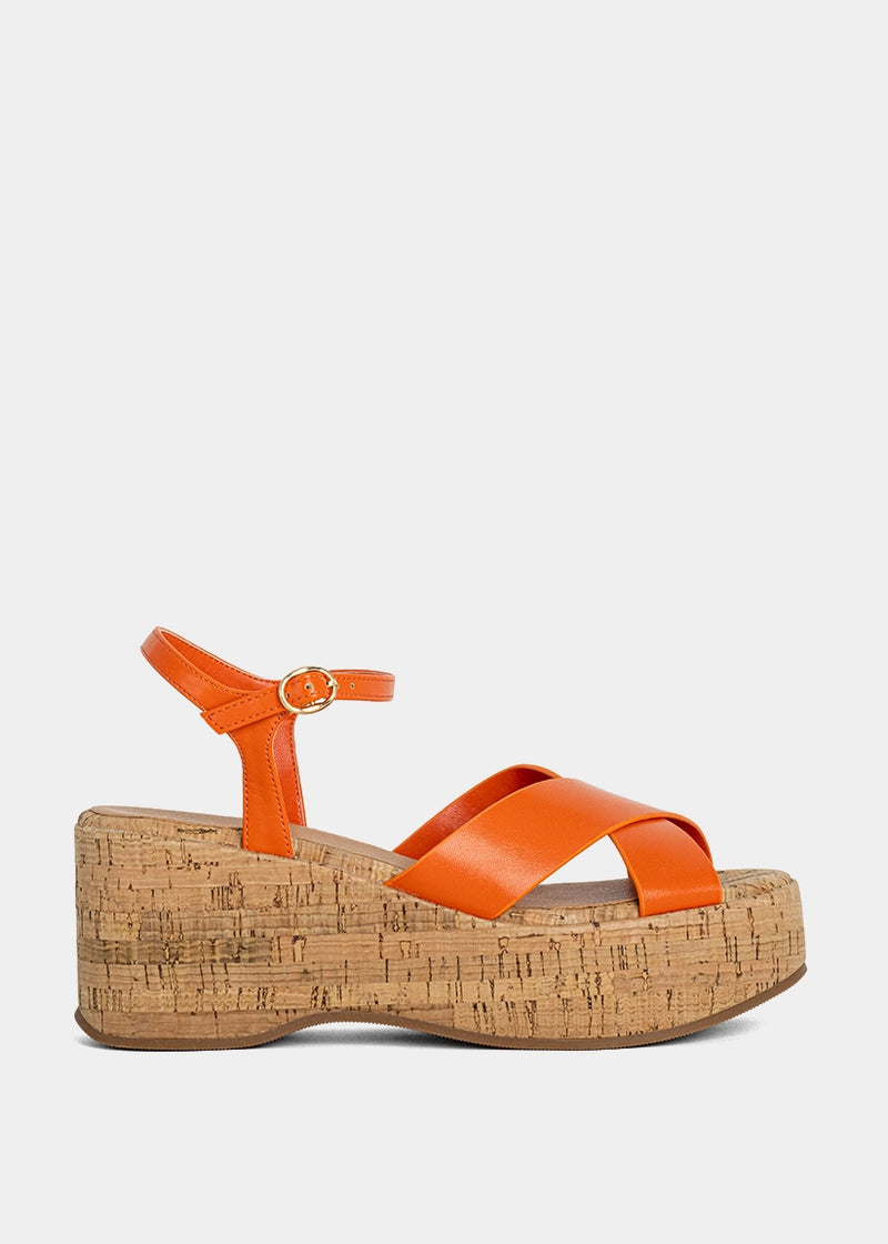 Bold never looked so effortless. INDIANA in Orange makes a statement with its vibrant faux leather straps and sculptural cork platform. The crisscross design and adjustable ankle strap offer a secure fit, while the lightweight sole adds major height without weighing you down. Perfect for rooftop parties, sunny getaways, or just adding a pop of color to your everyday looks.