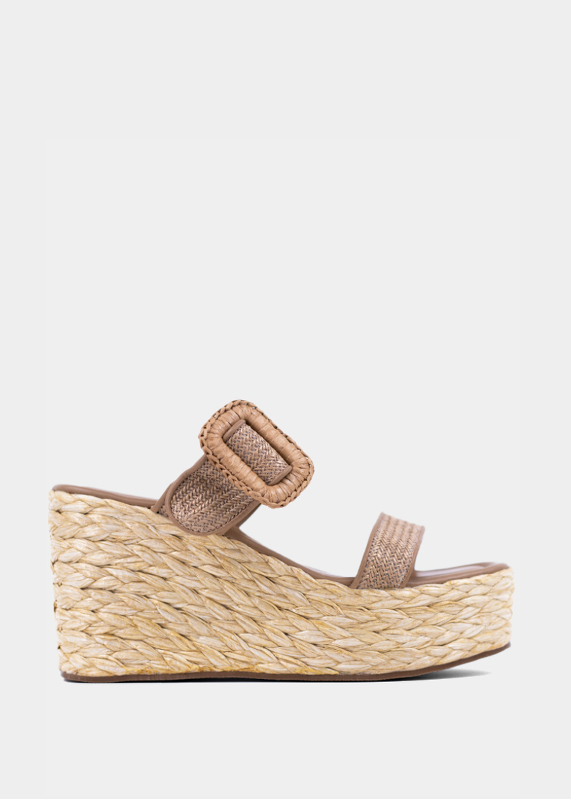 Meet LEENA in Natural, where texture meets timeless style! Featuring woven raffia mesh and faux leather straps, complemented by matching raffia soles, it's the perfect blend of rustic charm and modern elegance. A bold raffia-wrapped buckle and cushioned footbeds provide both style and comfort for effortless wear, any season!