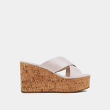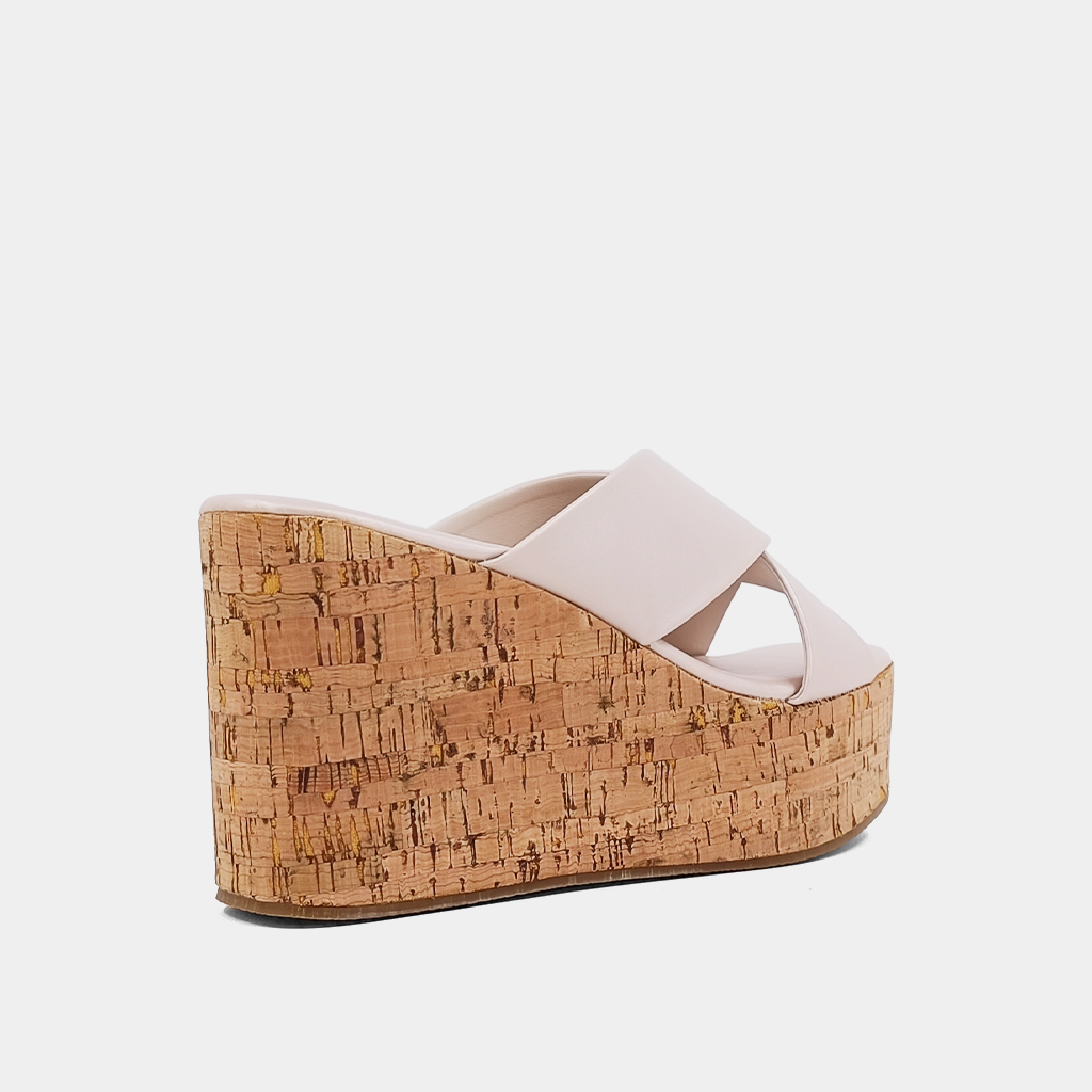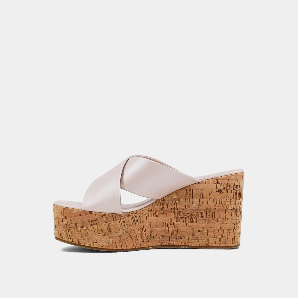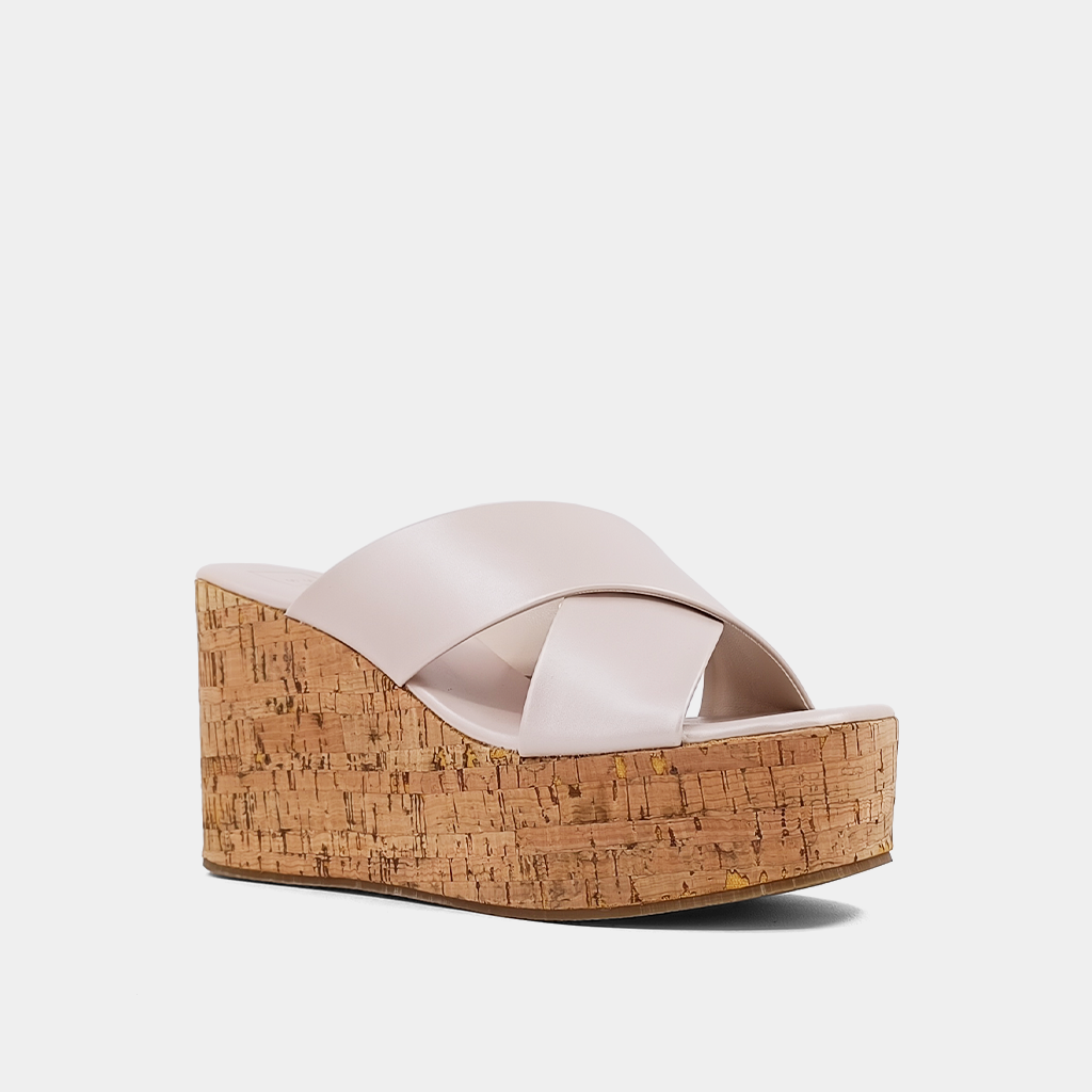 LUDOVICA boasts a comfortable cushioned footbed crafted from metallic faux leather, making it a versatile and stylish choice. The timeless cork-wrapped wedge heel adds a touch of elegance. Pair these sandals with flowing summer dresses for a feminine look or with slouchy jeans for a more casual vibe.