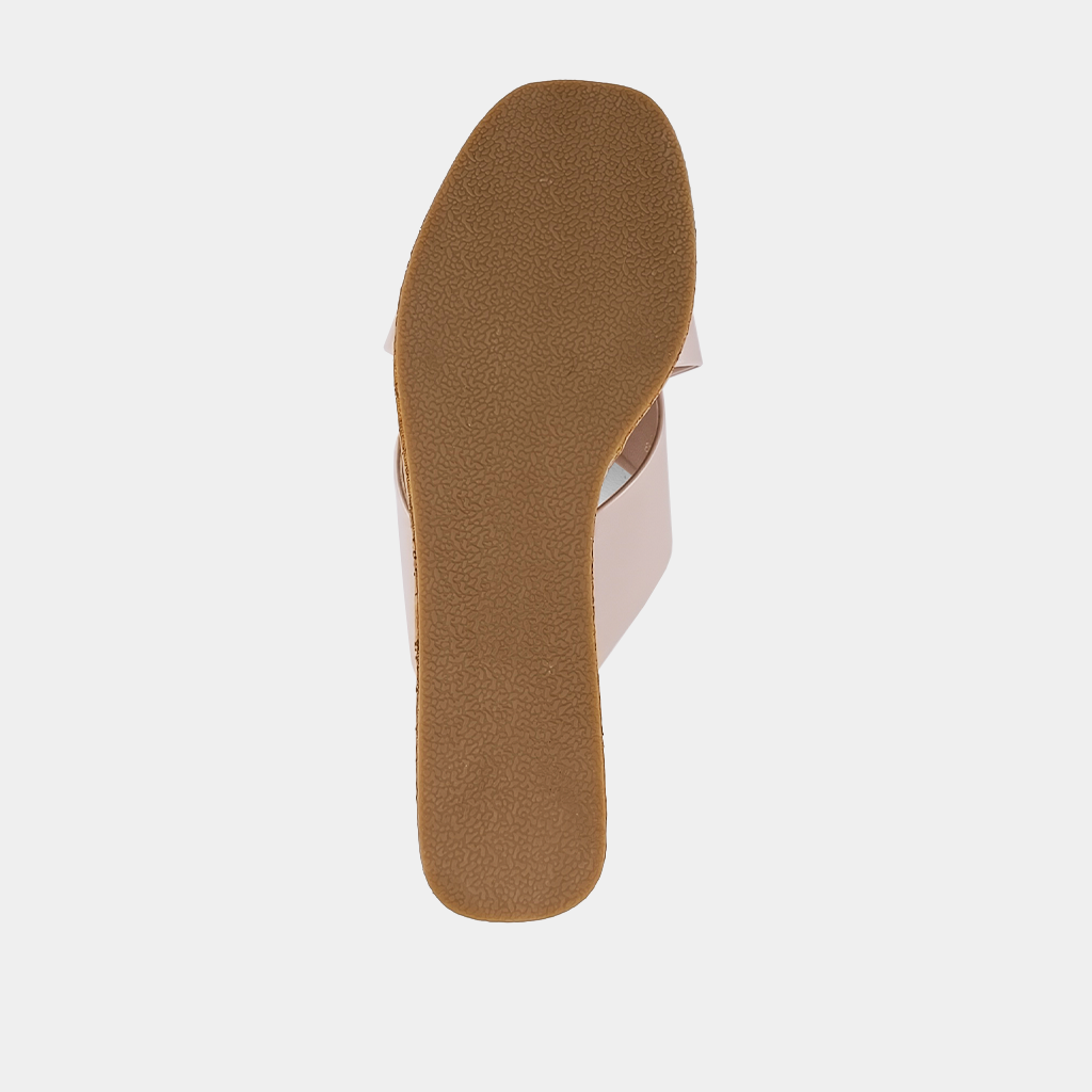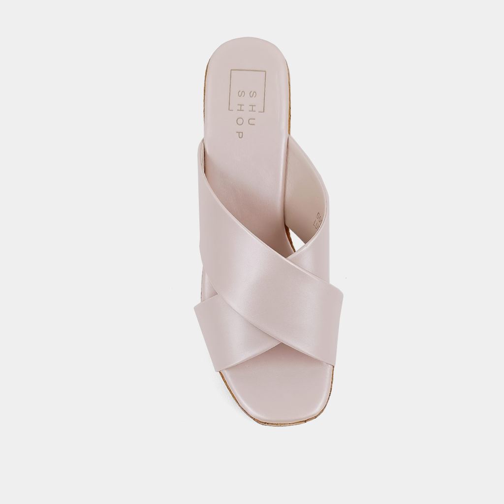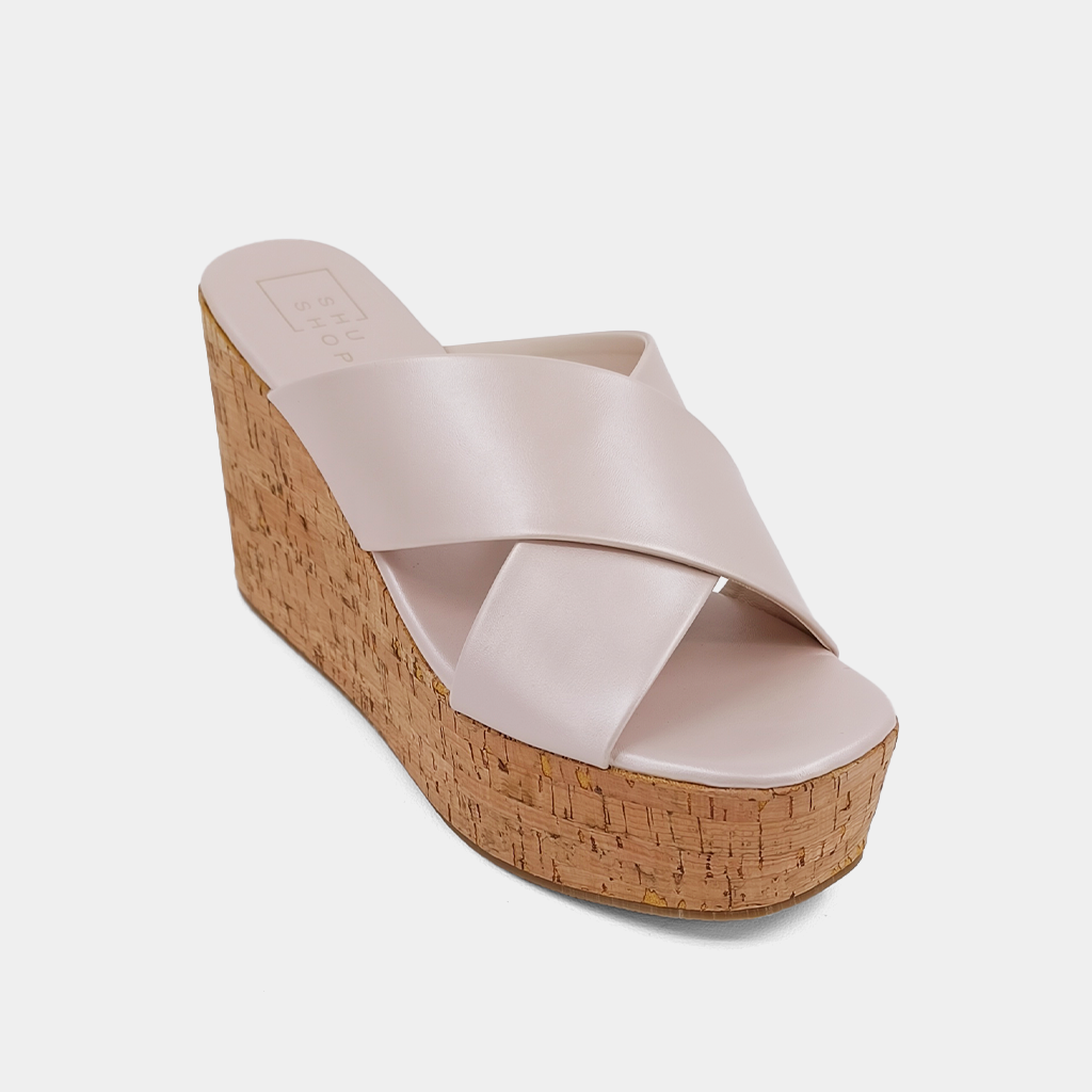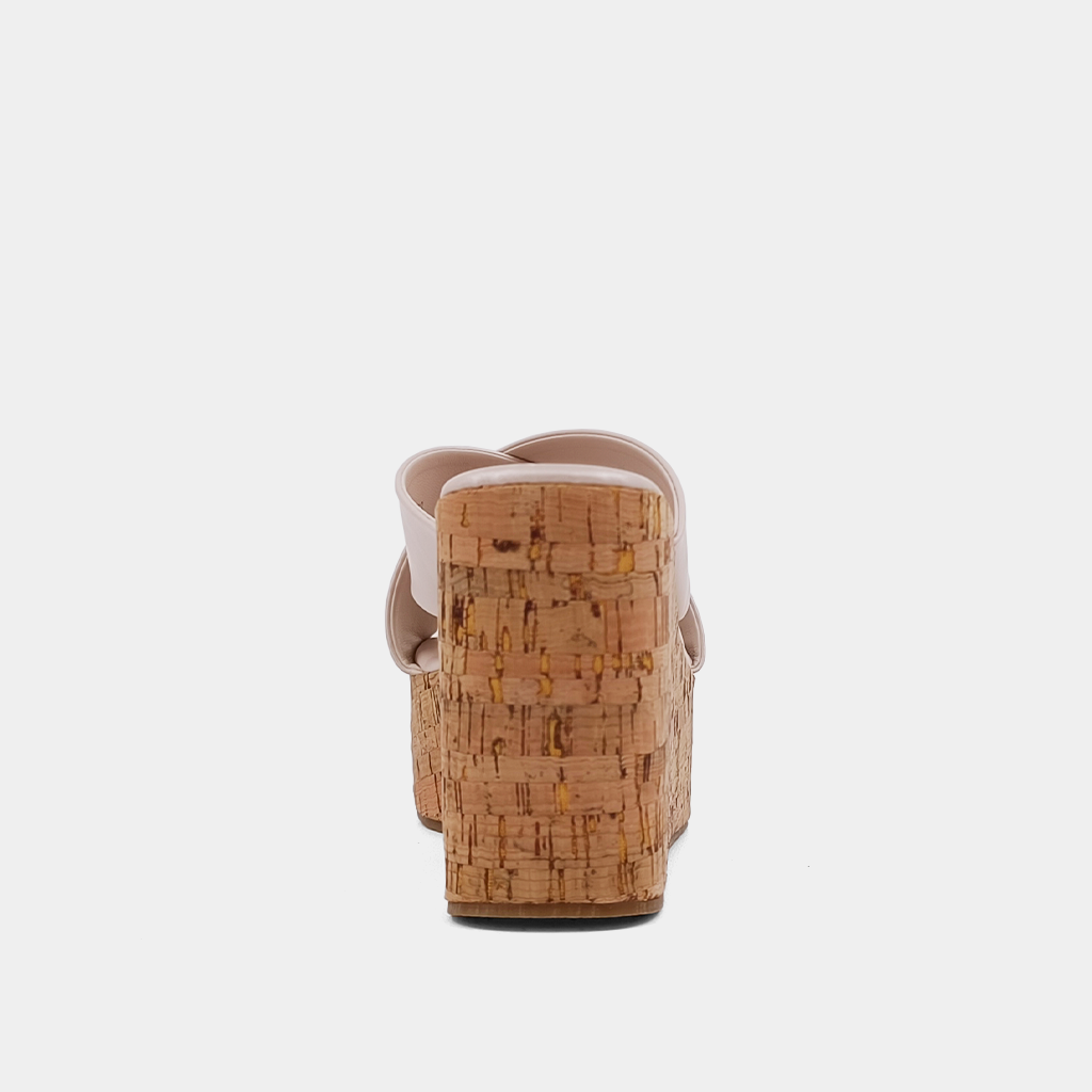 LUDOVICA boasts a comfortable cushioned footbed crafted from metallic faux leather, making it a versatile and stylish choice. The timeless cork-wrapped wedge heel adds a touch of elegance. Pair these sandals with flowing summer dresses for a feminine look or with slouchy jeans for a more casual vibe.