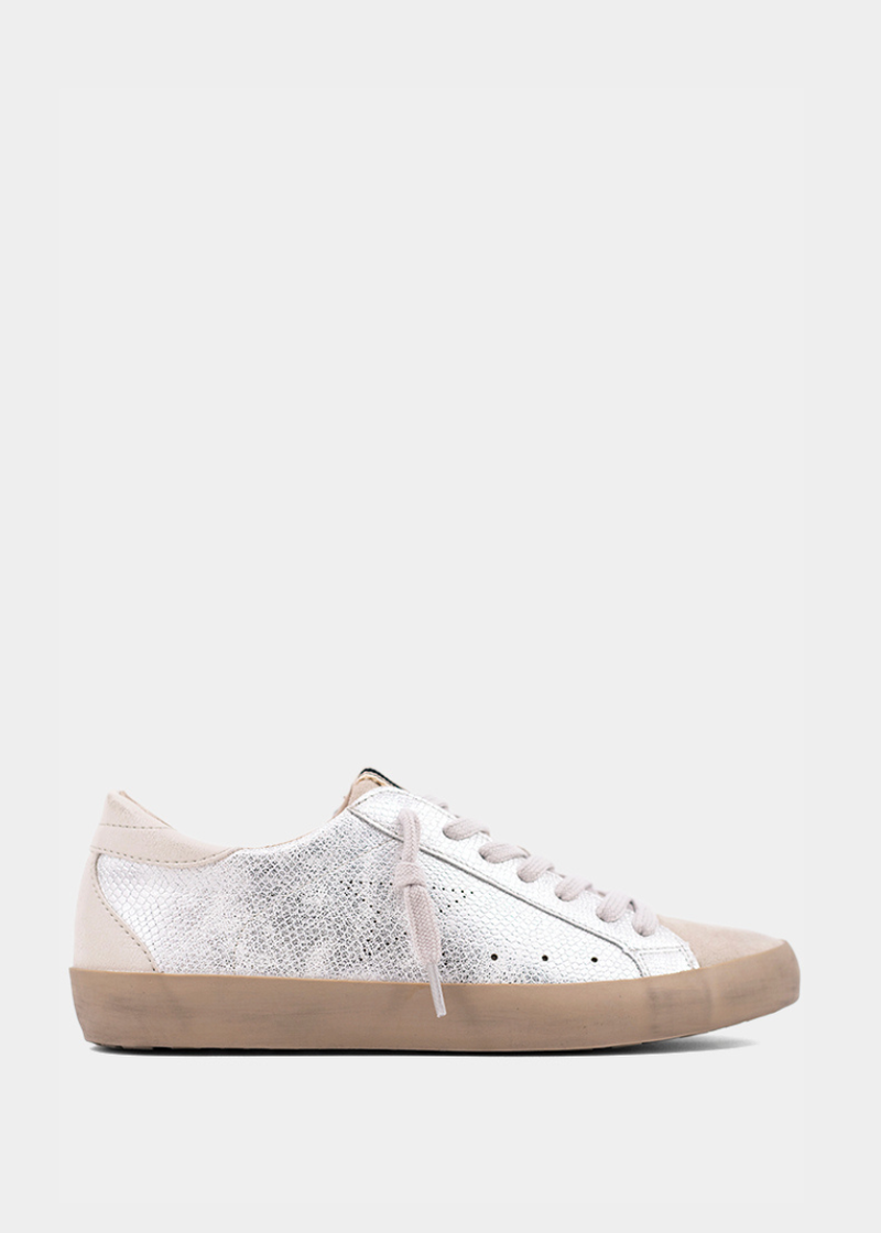 The MIA sneaker steps up the style game with a shimmering, textured finish that exudes understated glamour. Designed with chic faux leather in a snakeskin texture, soft suede accents, and a sturdy rubber sole, this sleek silhouette strikes the perfect balance between edgy and elegant. Whether you're pairing it with laid-back denim or a flirty dress, the MIA is your go-to for effortless sophistication and all-day comfort. It's low-key glam with a daring twists play it cool and let your look speak volumes