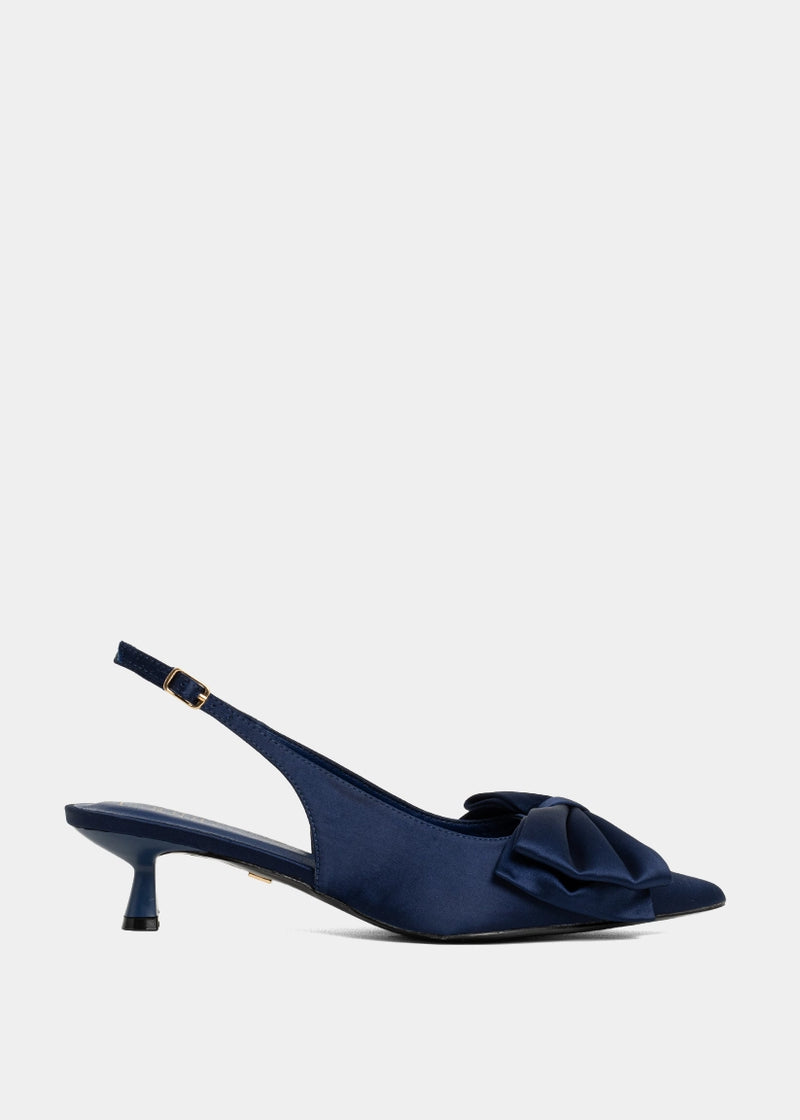 Upper: Rich navy satin with structured bow detail