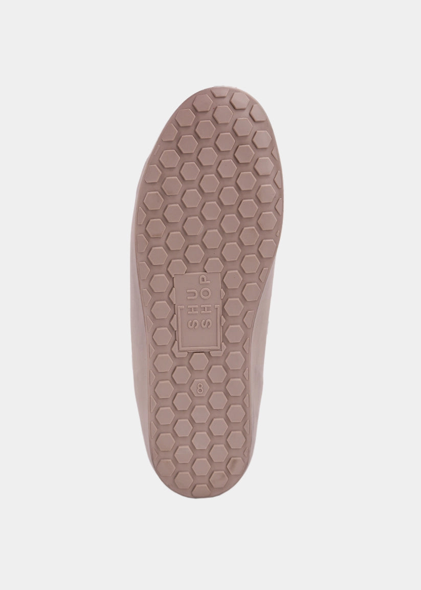 Key details: Faux snakeskin heel panel, gold SHUSHOP logo charm