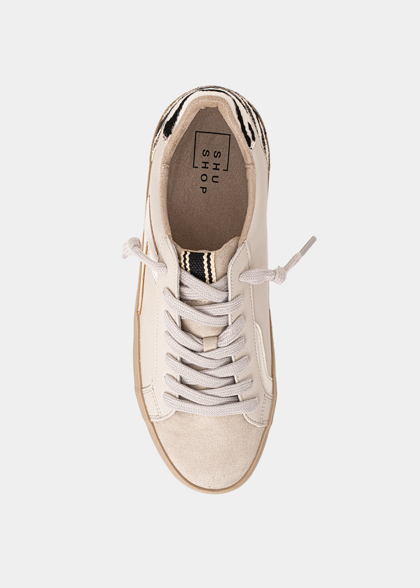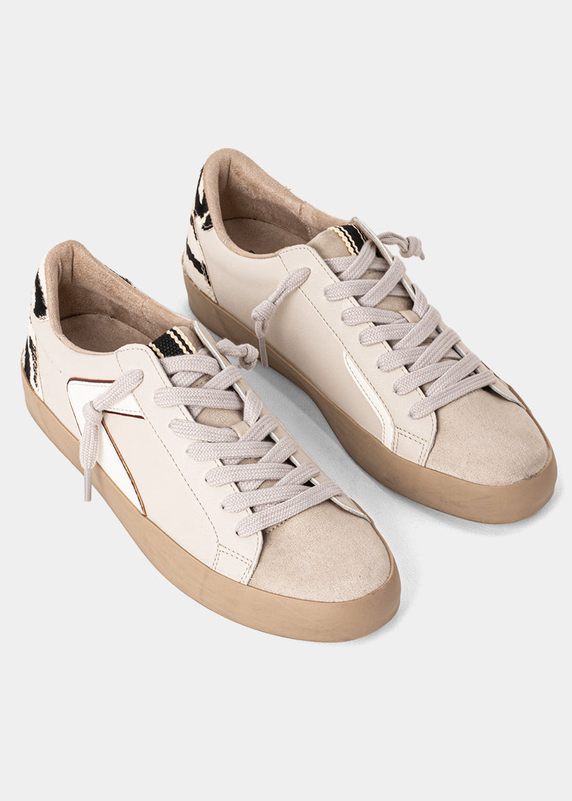 A wild twist on a classic silhouette. The Robbie in Zebra Hair mixes creamy tones with a zebra-printed real hair-on leather heel tab for a standout look that still feels elevated and clean. The neutral body lets the heel do the talking just the right amount of wild.