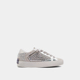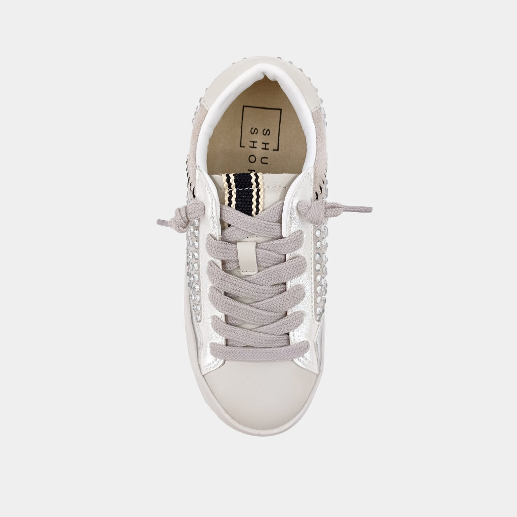Your kids can rock out like a stars with RUBY. The upper part is made of a mix of textiles, including artificial suede in nude, white, and beige, combined with modern and minimalist black stitching details. The design is visually clean and features metallic studs for a cool twist. The rubber soles are designed for long-lasting comfort and support, making them perfect for all-day wear.