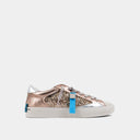 Your children deserve to be as stylish as you! Introducing RUBY - these low-top sneakers are made of textiles, smooth faux leather, and suede combinations. They feature a glittery body and stitching details, with sleek design and metallic distressed patches for a cool twist. The rubber soles provide long-lasting comfort and support, making them perfect for all-day wear. Timeless appeal and superior craftsmanship.