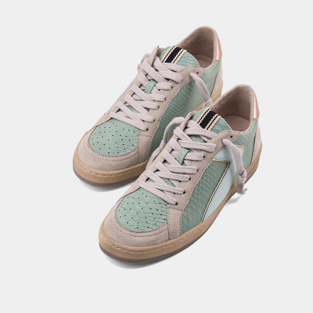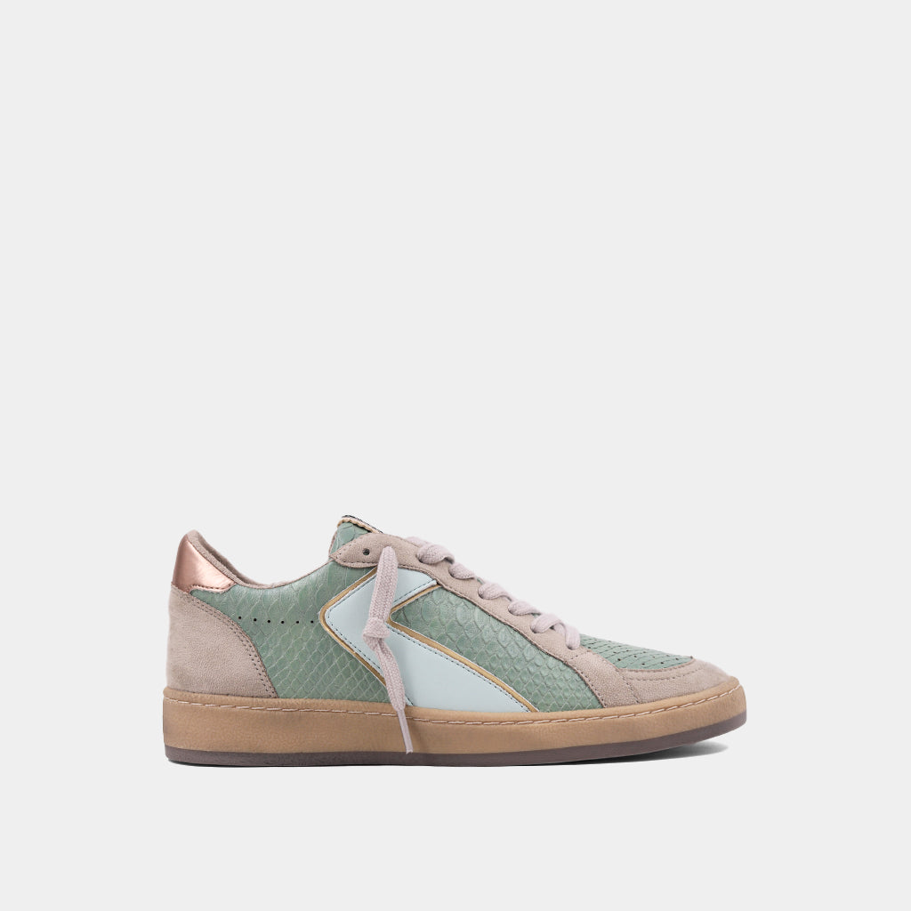 Step into style with the SALMA sneakers in Mint Snake! This design is a perfect blend of modern flair and timeless cool, featuring a bold faux snakeskin finish in refreshing mint green, complemented by a sleek white stripe and chic metallic accents. The soft faux leather and suede panels provide texture and contrast, while the cushioned sole ensures all-day comfort. Elevate your casual looks with these standout sneakers!