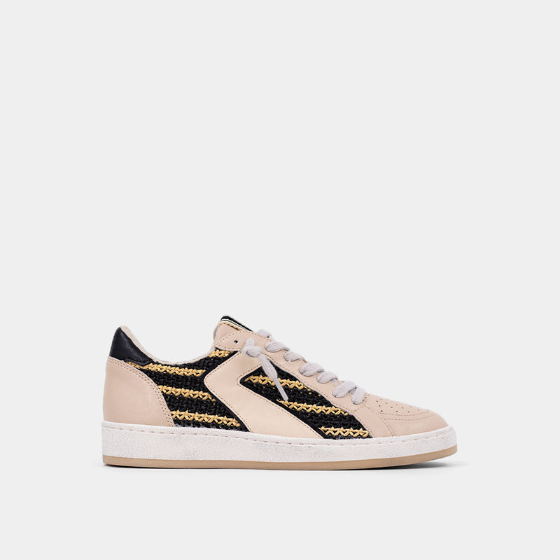 The SALMA in Black Woven showcases a stunning mix of textured woven details and sleek faux-leather accents. Its black and gold pattern adds a touch of sophistication, while the cushioned sole ensures unmatched comfort. Perfect for elevating your casual looks or adding flair to everyday outfits, SALMA is a must-have for modern women on the go.