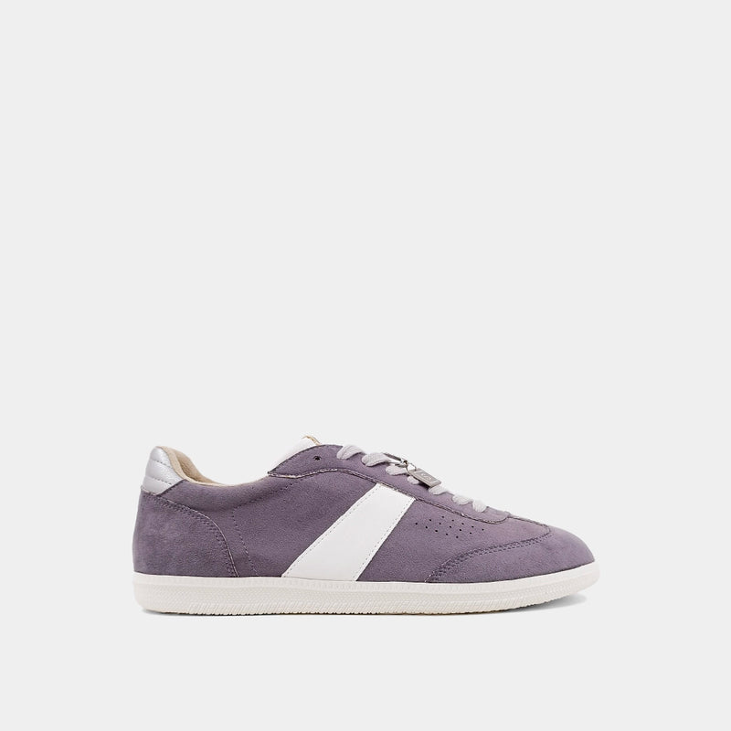 SYDNEY- the ideal fusion of 80s flair and contemporary trends. These low-top sneakers feature a soft grey suede body with white and silver faux leather accents, resulting in a striking yet minimalist appearance. The white rubber soles provide both style and comfort for all-day wear. Additionally, they come with a modern pendant tag showcasing the brand icon, making these sneakers a stylish statement piece with practical functionality.