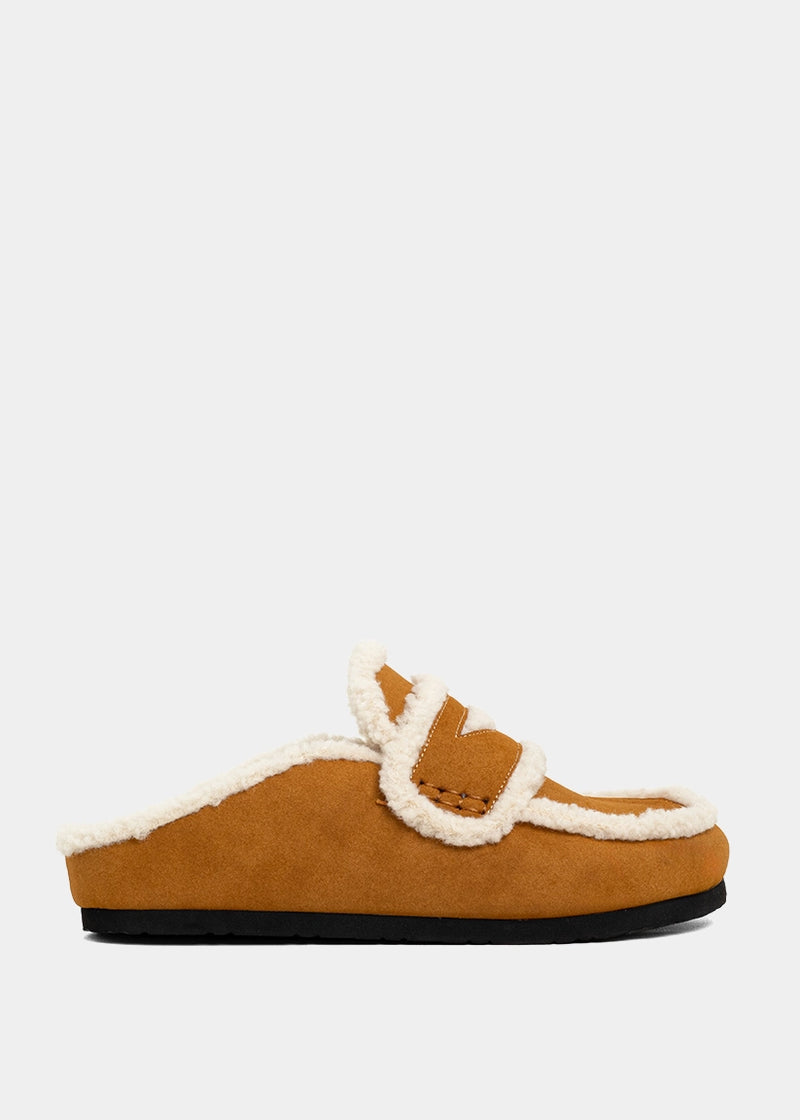 Upper: Faux suede in rich camel with contrast faux shearling trim
