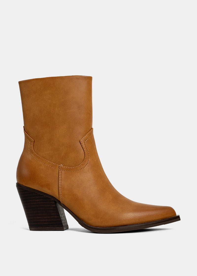 A bold icon in warm camel tones.VICTORIA is made to elevate you. This square-toe western boot brings structure and attitude to your look with its sharp lines, flared block heel, and rich faux leather. The mid-calf silhouette pairs perfectly with flowy skirts, structured trousers, or your favorite denim for an effortless statement. Elevate your everyday with a boot that walks the line between classic Western and modern cool.