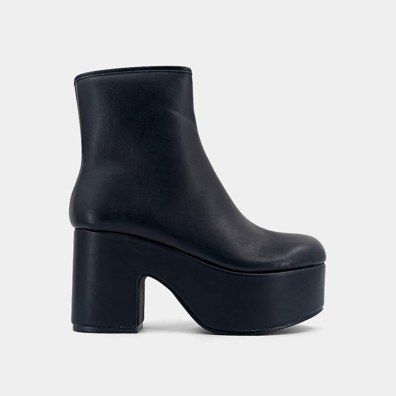 Our XIVA ankle boots take us back to the renowned styles around the '60s. Made from faux leather, they have a close sock-like fit and rest on a thick platform balanced by a chunky heel. They can be styled with any outfit, from printed dresses and midi skirts to trousers and dad jeans.