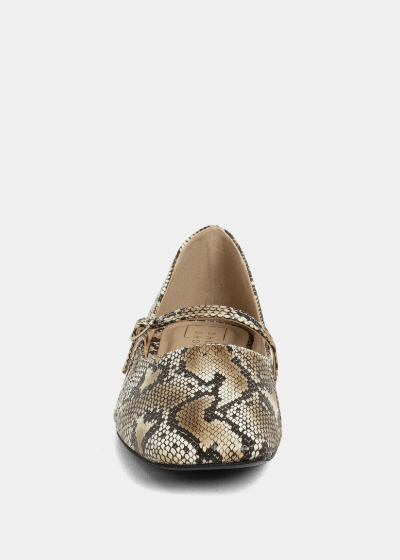 Sleek, smart, and subtly wild-the ADELE flat in natural snake print brings an elevated twist to a classic Mary Jane. With a pointed toe and faux snake-textured finish, this shoe is all about quiet confidence. From tailored trousers to weekend denim, ADELE adds instant edge with refined detail.