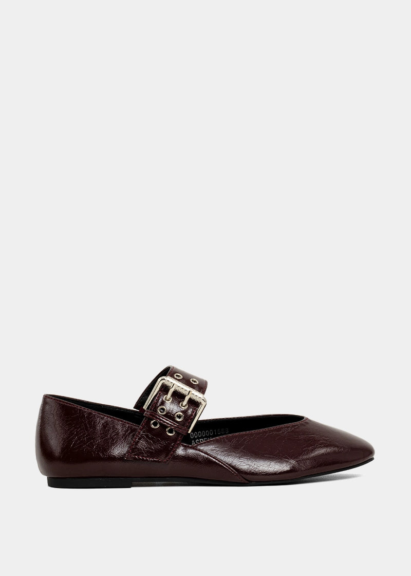 A little drama goes a long way. The ASPEN flat in Wine takes the beloved ballet silhouette and gives it a bold update with a wide grommeted strap and oversized silver buckle. The deep wine hue and glossy faux leather make this pair unexpectedly striking-perfect for when your outfit needs that extra edge.