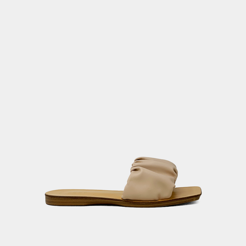 Our stylish BELINDA sandals are made of high-quality faux leather, with elegant ruched straps that wrap around your feet for a snug fit. The modern squared-toe finish adds versatility and fashion to your look. The BELINDA slip-on sandals are comfortable and durable, perfect for any summer occasion.
