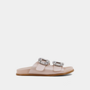 Our BRIDGET slip-on sandals are crafted from super soft faux leather. This pair feature a comfortable molded footbed and is crowned by two buckle ornaments embellished with crystals. Make sure to pack these for your next weekend getaway.