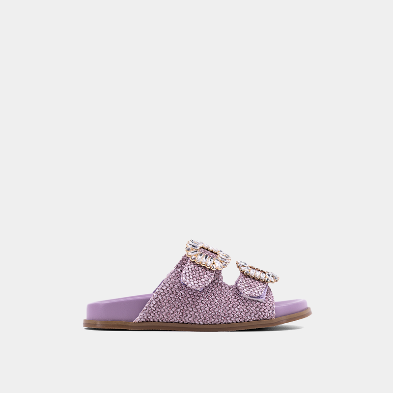 For little ones who love a touch of sparkle! The BRIDGET MINI in Lilac Woven is a dreamy mix of charm and comfort, featuring a textured woven upper and dazzling gem-encrusted buckles. The cushioned sole keeps tiny feet happy, whether they're playing or twinning with mom. A must-have for little fashion kids!