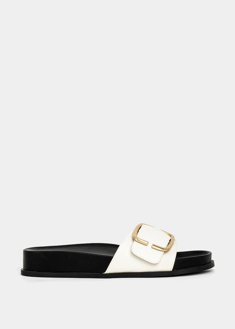 Effortless, polished, and made for sunny days. DELPHINE is the slide sandal that brings relaxed sophistication to your everyday wardrobe. Featuring a clean, wide strap and bold buckle detail, this style is designed to elevate casual looks with minimal effort.