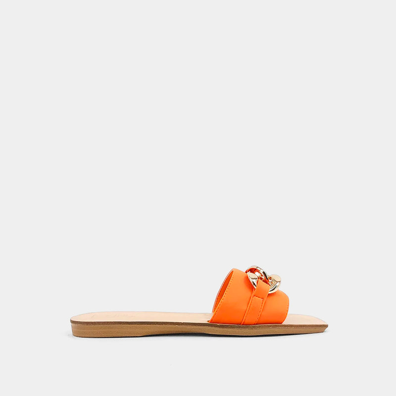 Our minimalistic DILIA flat sandals features a single strap topped with a lightweight chain and eye-catching '90s-inspired squared toes. Let yours complement any warm-weather outfit.