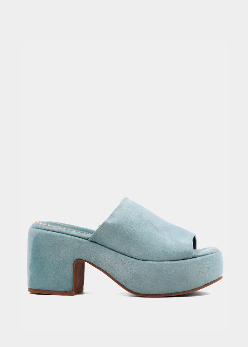 Step into vibrant style with the GYPSY heel sandal, now in eye-catching aqua suede. This bold design features a wide, seamless strap and a statement block heel, creating a retro-inspired silhouette that turns heads. The platform sole offers stability, while the cushioned insole ensures all-day comfort. Perfect for adding a pop of color, the GYPSY sandal elevates any outfit, from casual jeans to flowing dresses, with effortless flair.