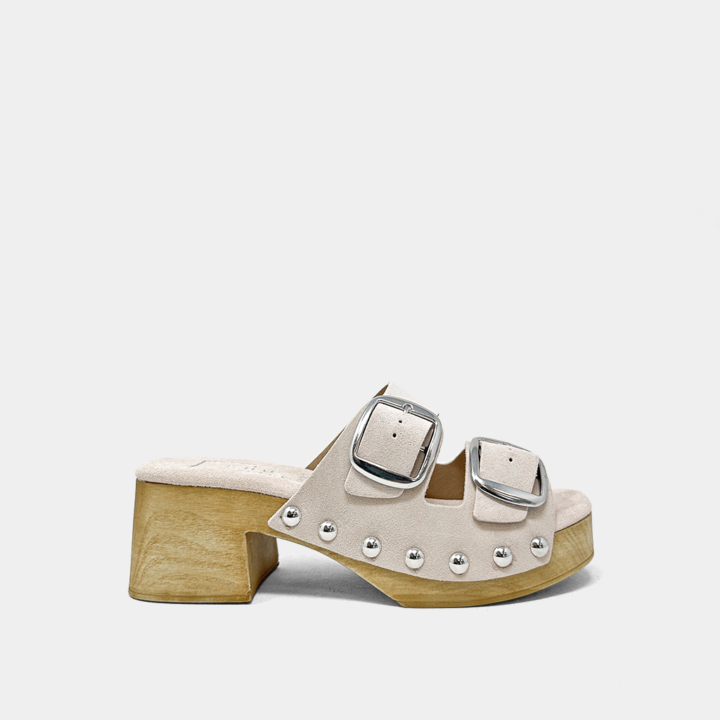 Introducing JUNO clogs - the perfect blend of timeless style and contemporary fashion. Expertly crafted in Italy, these clogs feature a faux wood bottom and a leather upper in a neutral finish that pairs well with any outfit. The edgy stud design details and soft palette create a unique and eye-catching look that's guaranteed to turn heads. Whether you're dressing up or down, JUNO clogs provide the perfect finishing touch to any outfit. To unleash their full potential, pair them with boot-cut jeans or floral maxi skirts for a chic, sophisticated look that will grab attention.