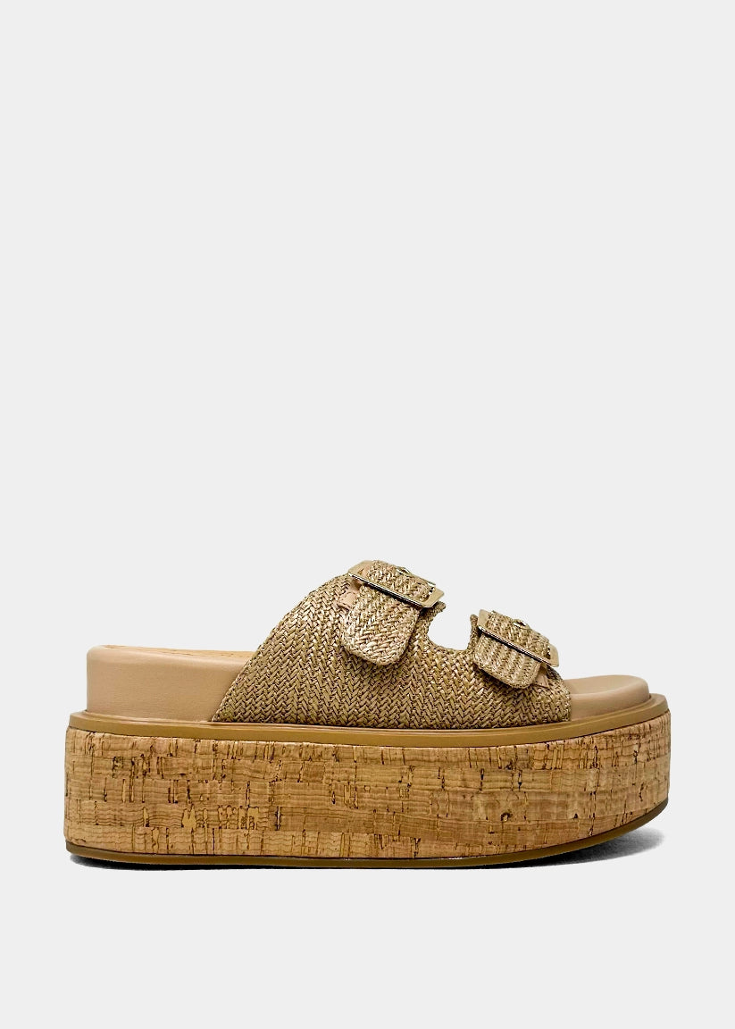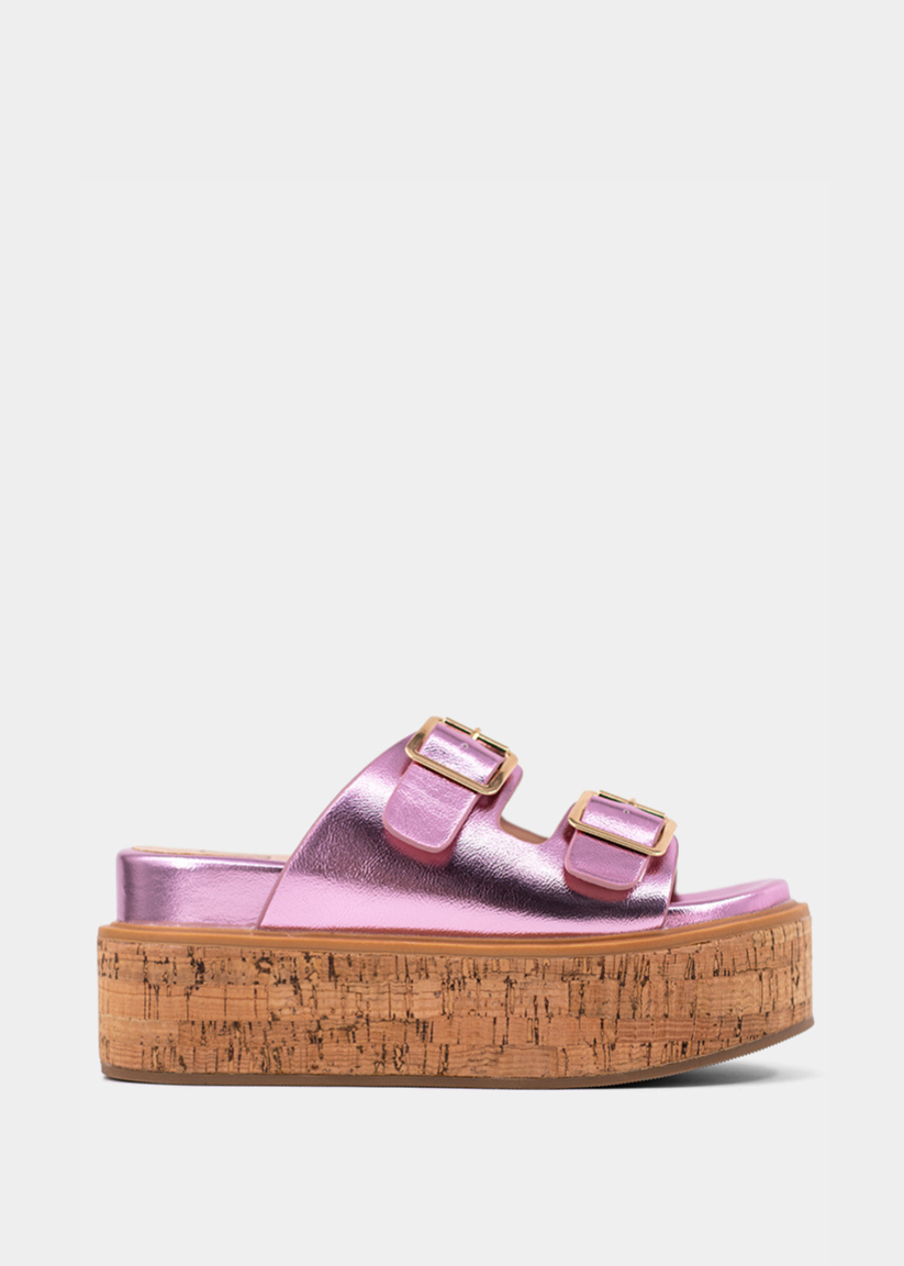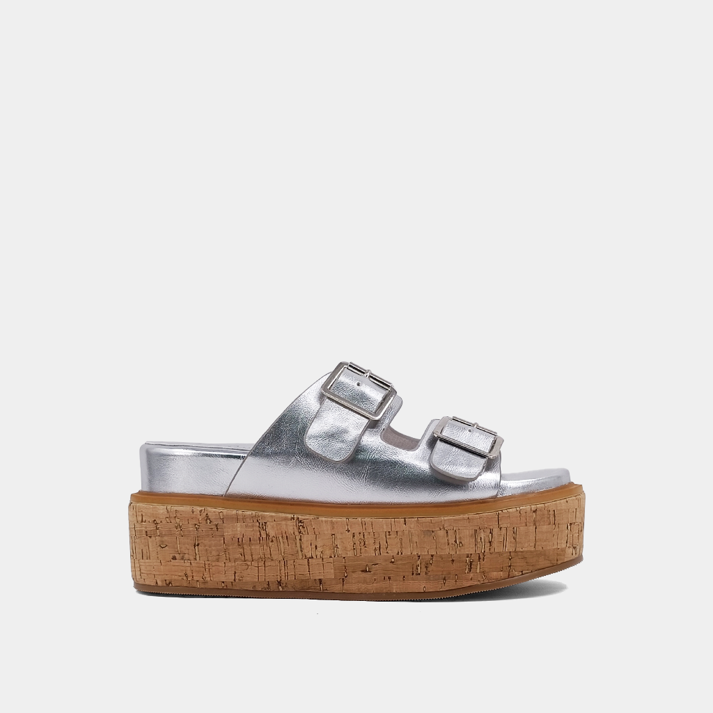 Our new addition, LUCINDA, features buckles that add a gleaming signature to the dual-strap upper of this dreamy metallic faux buttery leather slide sandal. It floats on a cushy memory foam footbed and a timeless cork-wrapped wedge platform. Wear yours with breezy summer dresses or slouchy jeans.