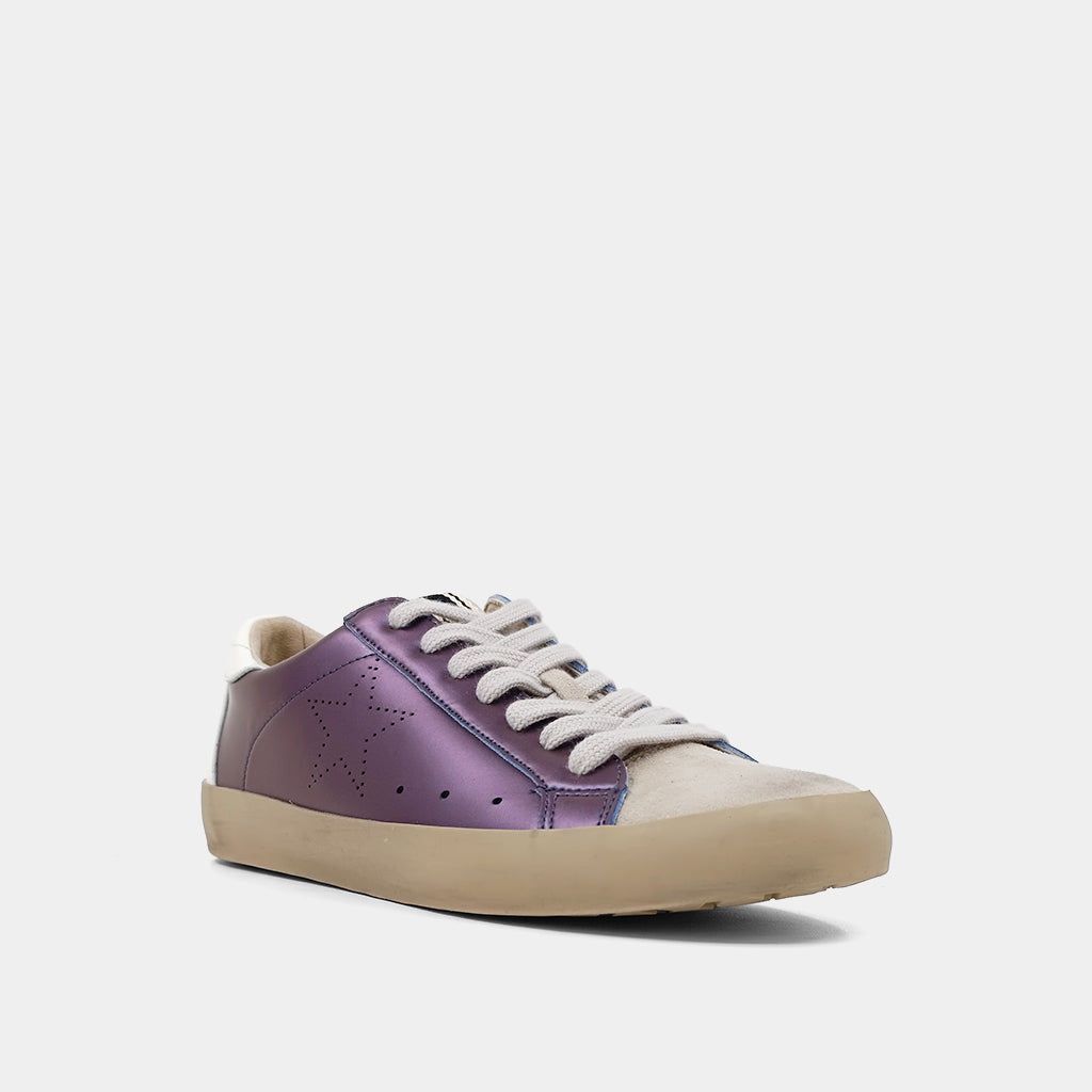 Introducing the MIA sneakers vintage-inspired footwear option that exudes timeless style and durability. The sneaker boasts a sturdy sole and textured panels constructed from top-quality metallic faux leather and suede. These versatile sneakers are designed to complement and elevate any outfit effortlessly, making them a perfect choice for any occasion.