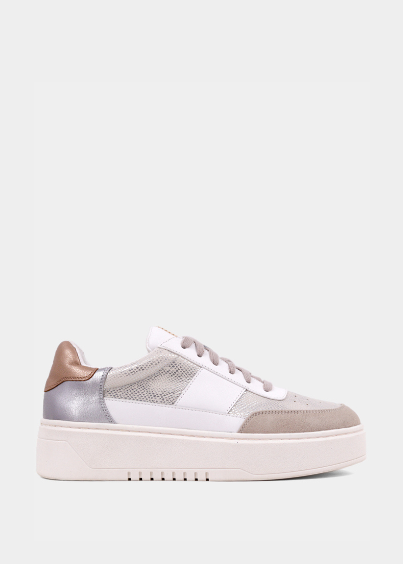 Featuring a textured silver snake-print upper with rich suede and crisp faux leather accents, the ORIANA platform sneaker in Silver Snake offers a striking blend of boldness and sophistication. The cushioned footbed keeps you comfortable, while the elevated sole adds height and modern edge. Complete with metallic detailing and a signature charm accent, Oriana is your go-to for standout style and elevated fashion vibes.