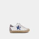 Our Mommy and Me collection feature fun-sized versions of our best-selling sneakers. The PAULA sneaker is a fusion of vintage and modern styles that offer exceptional comfort and durability. With its rounded toe and robust sole, the sneaker provides a perfect fit. You can choose from a variety of color combinations to match any outfit. This pair is constructed using high-quality materials such as faux leather, suede, and glittery blue denim distressed fabric embellishments, which make it a reliable and fashionable choice.