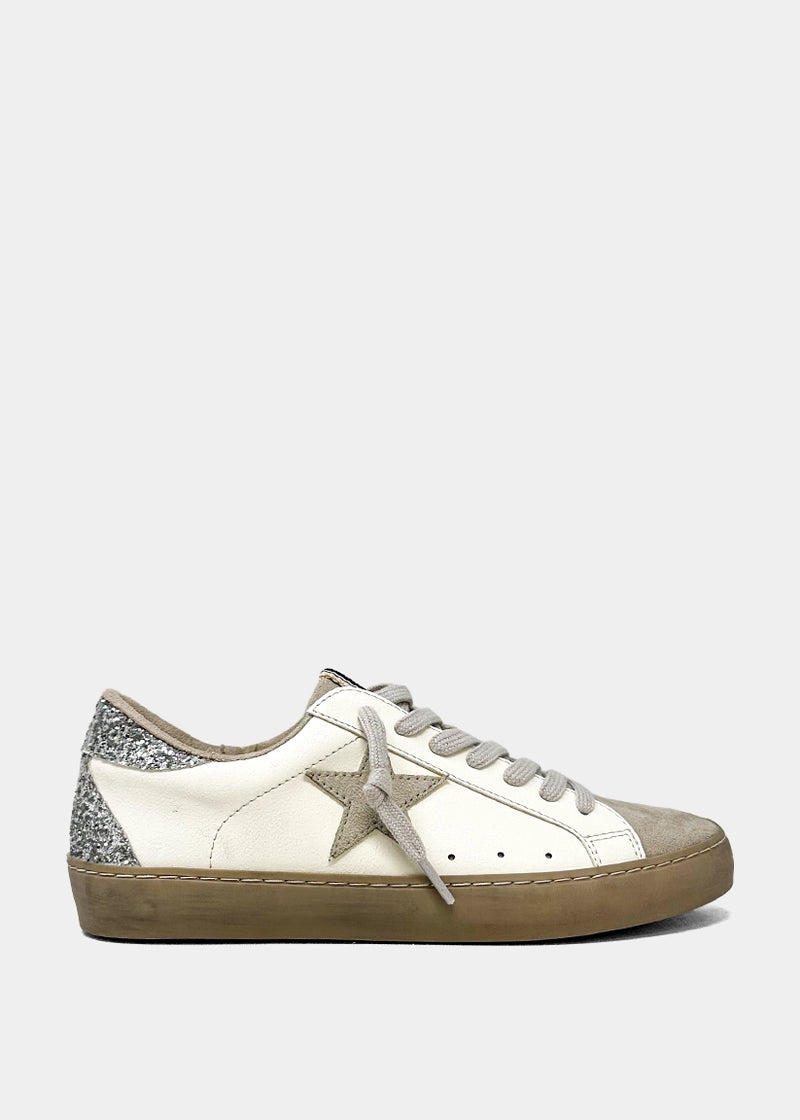 Meet PAULA in Silver Grey, the everyday sneaker that goes with everything and stands out with subtle sparkle. Designed with a soft faux suede toe, glitter heel, and a tonal grey star, this style adds a little shine without being too loud. Comfy from the first step and versatile enough for jeans, dresses, or sweats, PAULA is your go-to for that laid-back but put-together vibe.