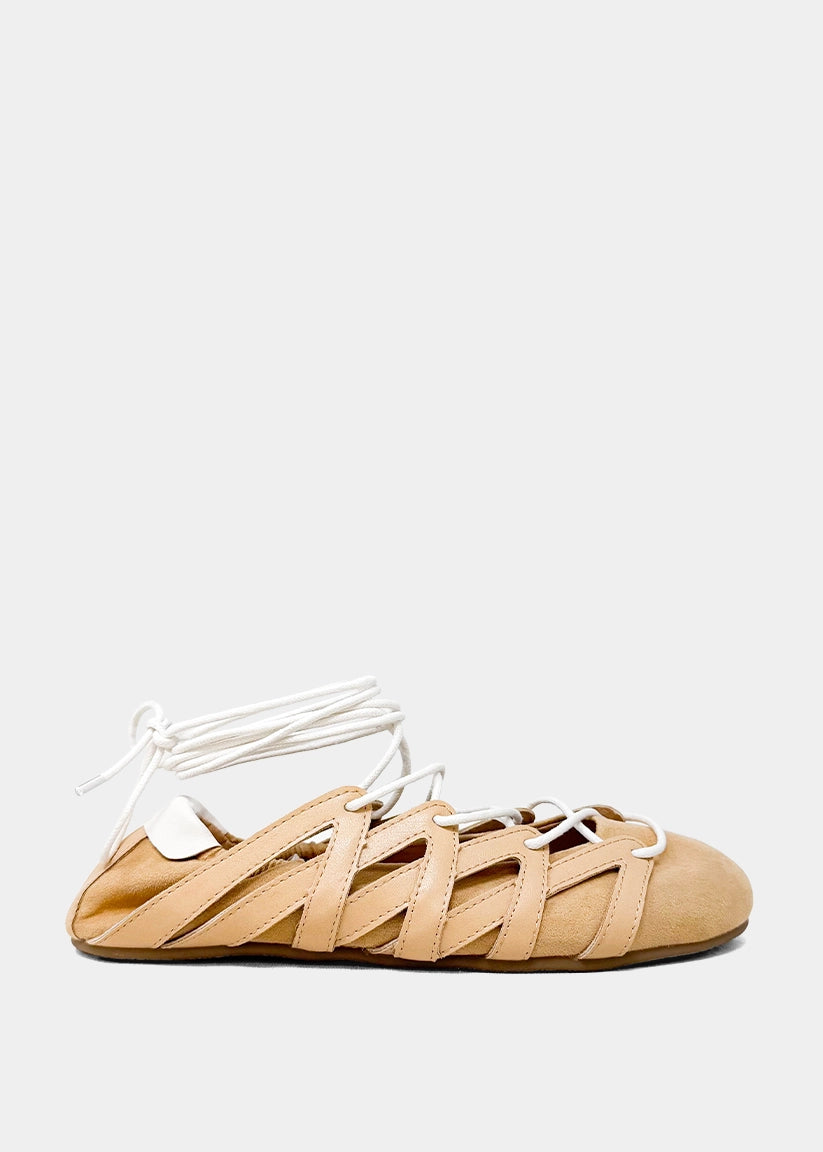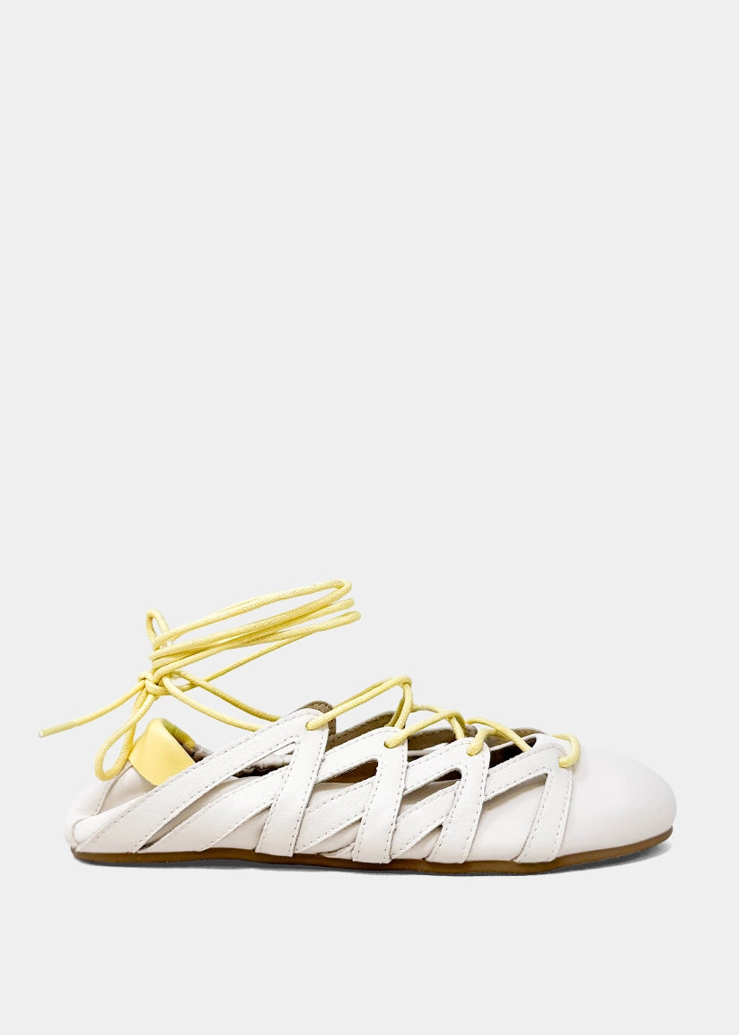 PAVLOVA redefines the flat with sculptural lines and effortless elegance. Designed with soft ruched detailing and bold structured straps, this silhouette feels feminine yet directional the kind of piece that elevates even the simplest outfit. The lace-up ankle ties add a refined, ballet-inspired touch while allowing for an adjustable fit. Lightweight and easy to style, PAVLOVA transitions seamlessly from daytime chic to evening minimalism. A flat that feels anything but basic.