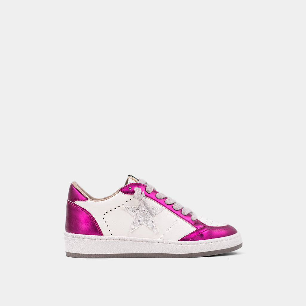 Our Mommy and Me collection showcases sneakers that are specifically designed for both mothers and their little ones. Among them is the PAZ, a retro classic sneaker with a sleek and low-top design. It features a fiery glittering faux leather upper and striking suede panels, making it stand out from the crowd. The sneakers are not only stylish but also comfortable and durable, making them perfect for everyday wear.