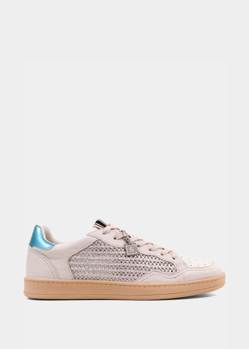 Step into style with the ROMA sneaker in Silver Woven, a captivating blend of texture and modern glam. This low-top masterpiece features a shimmering silver woven upper, delivering breathability and eye-catching appeal. The metallic aqua faux leather heel tab adds a vibrant splash of color, effortlessly turning heads. Enhanced with premium faux leather and soft suede accents, it's designed for all-day comfort and standout style. Elevate any outfit with this chic sneaker that merges fashion-forward flair with everyday practicality.
