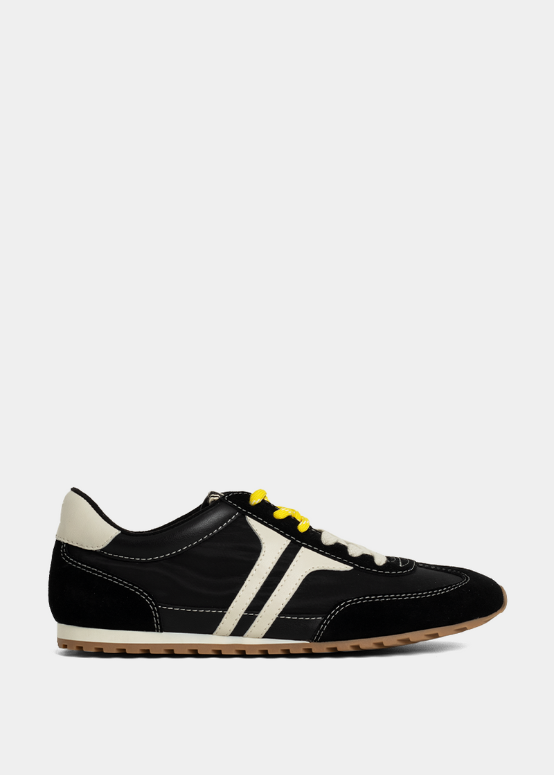 A sleek essential with vintage attitude. The SARAH in Black delivers timeless cool with its contrast white details, low-top silhouette, and subtle stitching that nods to retro running shoes. Whether you're styling it with denim, cargos, or a tailored look-it brings polish with an edge. Ready to wear on repeat, all year long.