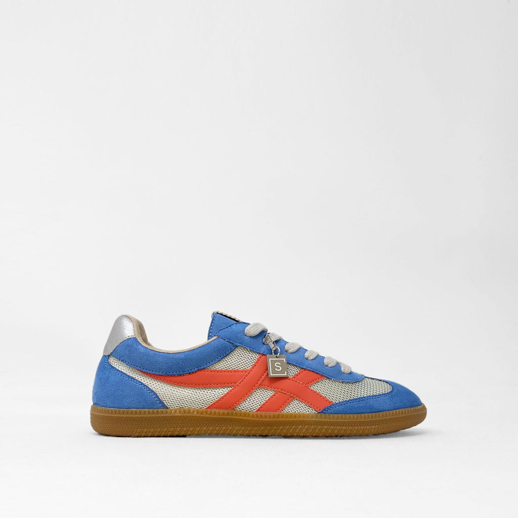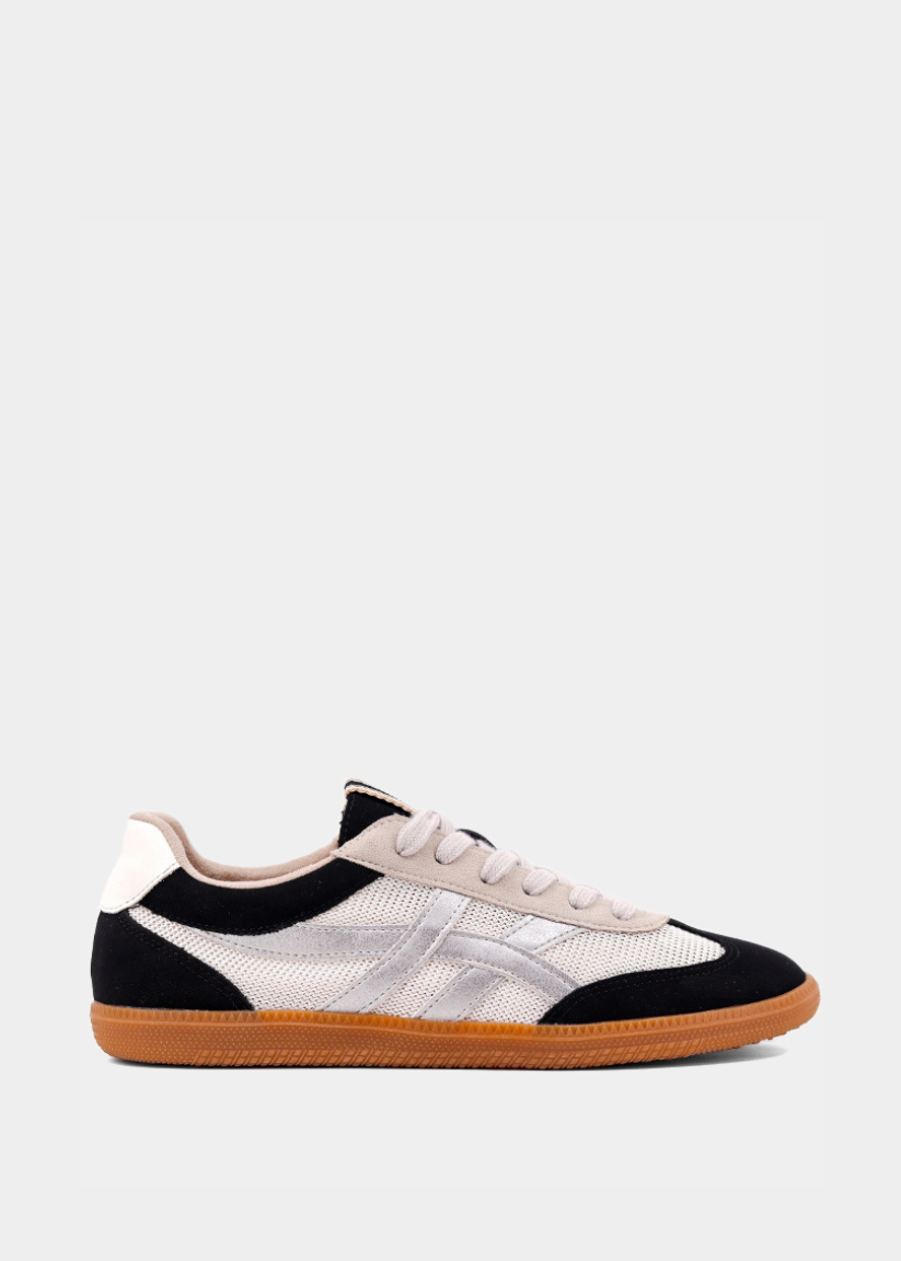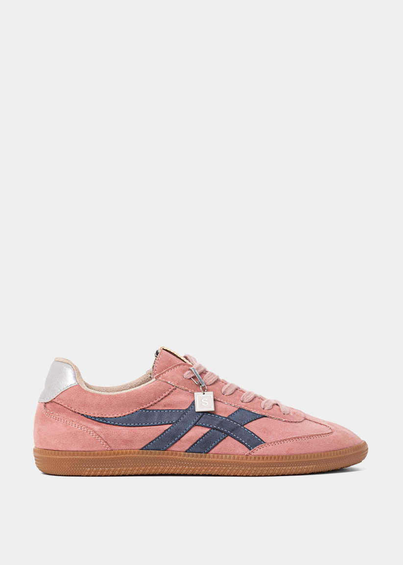 This sneaker blends modern fashion with timeless craftsmanship. Featuring soft sage green suede overlays and breathable beige mesh panels, it offers both style and comfort. The sleek faux leather stripes in a neutral gold tone provide a subtle yet sophisticated contrast, while the durable gum rubber sole ensures traction and durability. Finished with light gray laces and a signature metallic "S" tag, this shoe is the perfect choice for a contemporary, casual look.