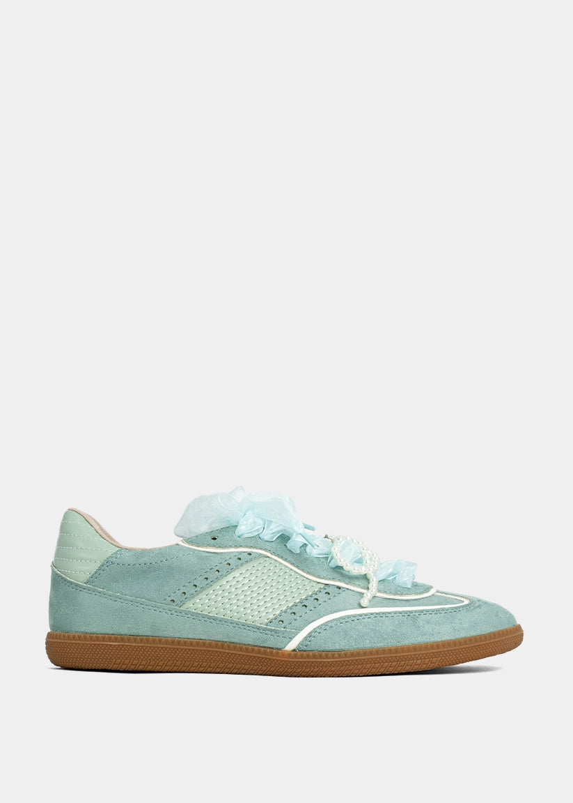 • Closure: Faux pearl laces for a playful twist