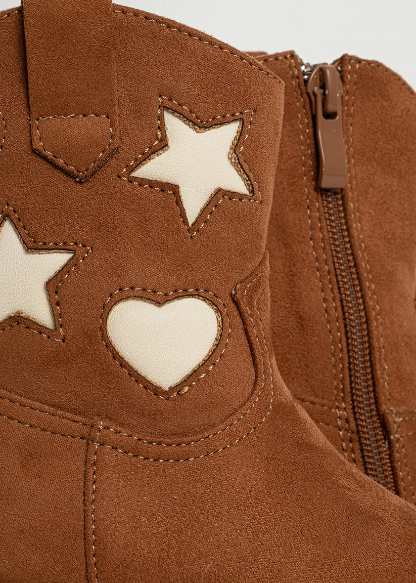 • Upper: Soft camel faux suede with ivory heart and star appliqués