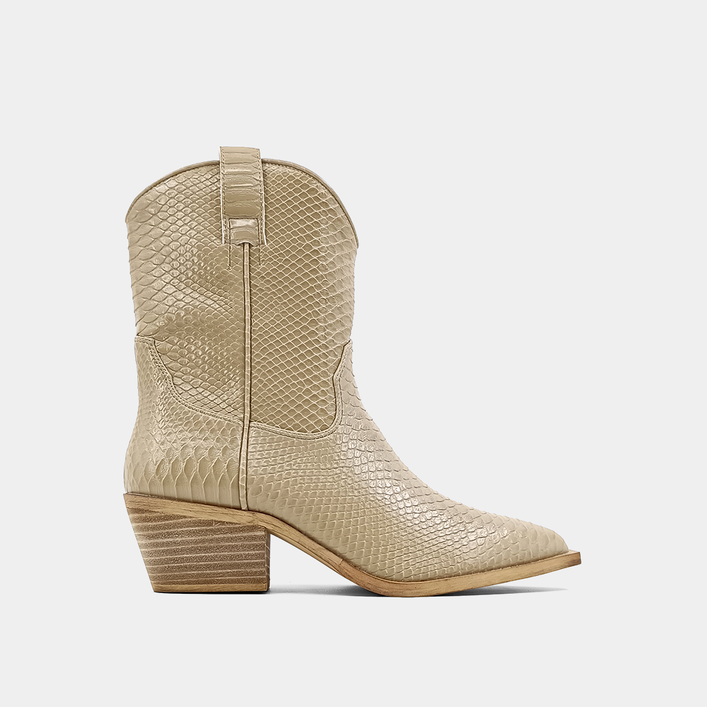 The ZOUZOU boot in Camel is your new go-to for effortless western flair. Crafted in a rich faux leather with embossed croc texture, this boot strikes the perfect balance between rugged charm and elevated style. The neutral camel hue makes it endlessly wearableperfect for denim, dresses, or flowy summer layers. With a slightly pointed toe, stacked heel, and inner zip, ZOUZOU is made for walking in style and comfort.